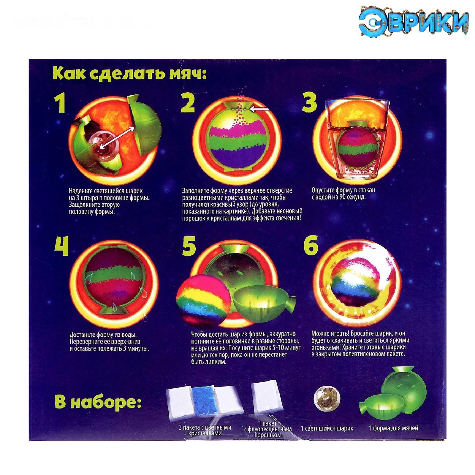 С набором «Прыгающие мячи» ребёнок проведёт химический опыт и создаст светящийся прыгающий шарик своими руками.