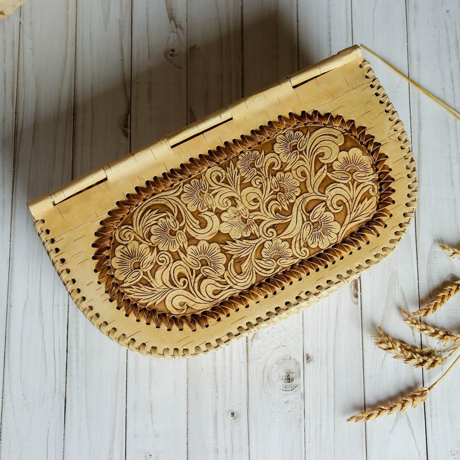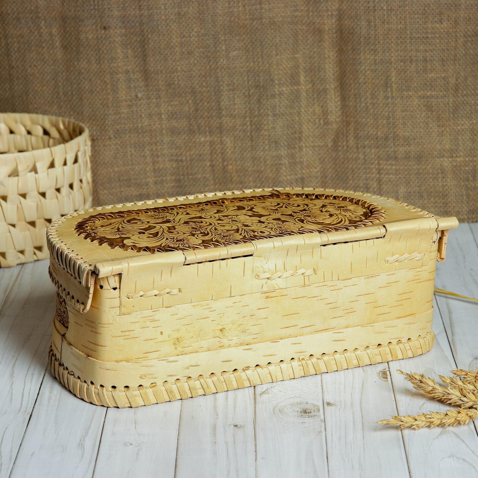 Батонница «Узор», на шарнире, 32×18×11 см, береста