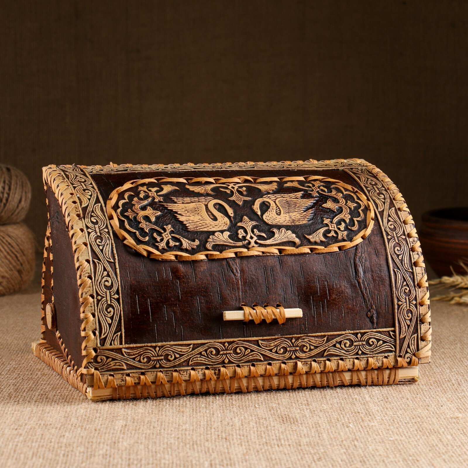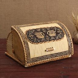 Хлебница «Лебеди», сложная, 28×22×15см, береста, микс