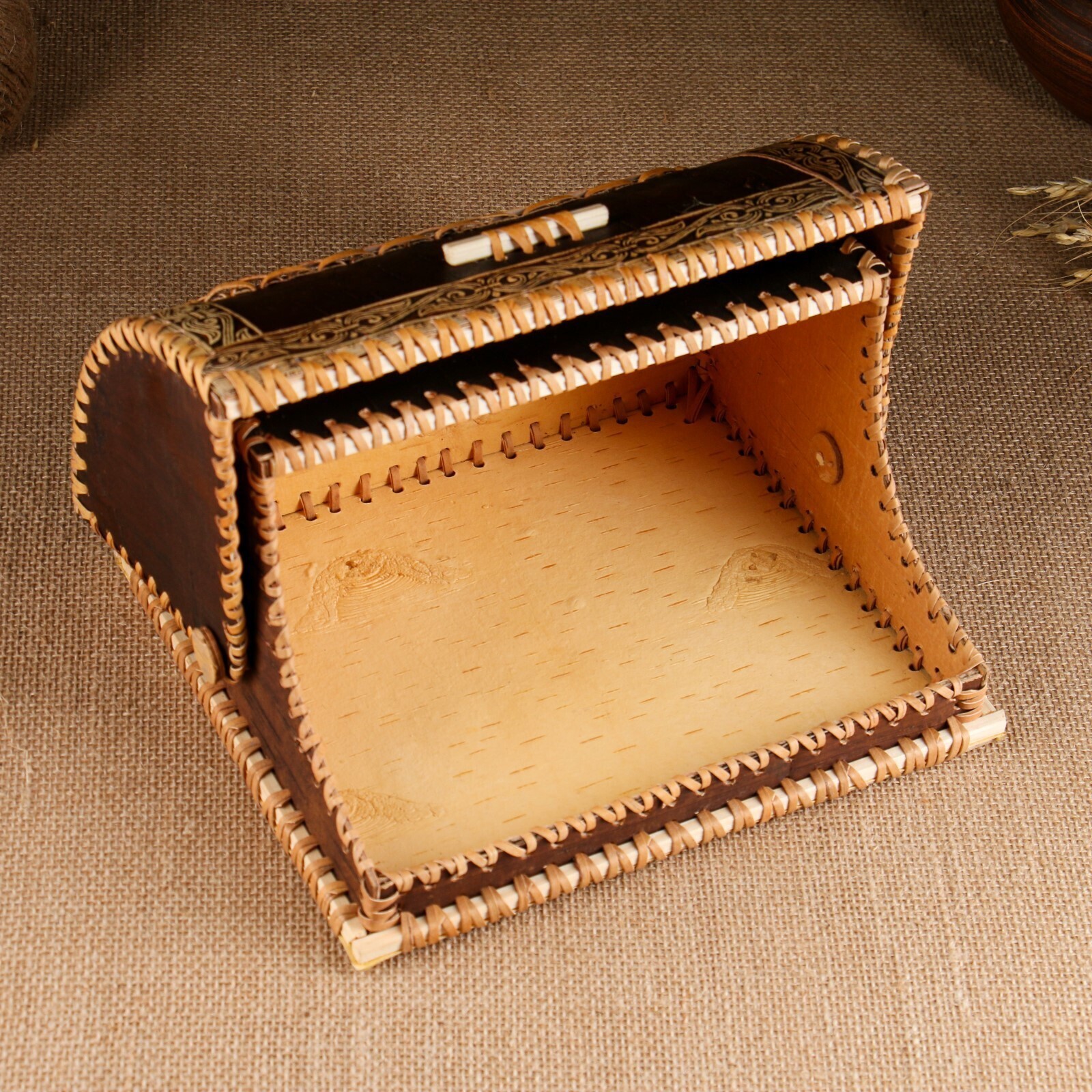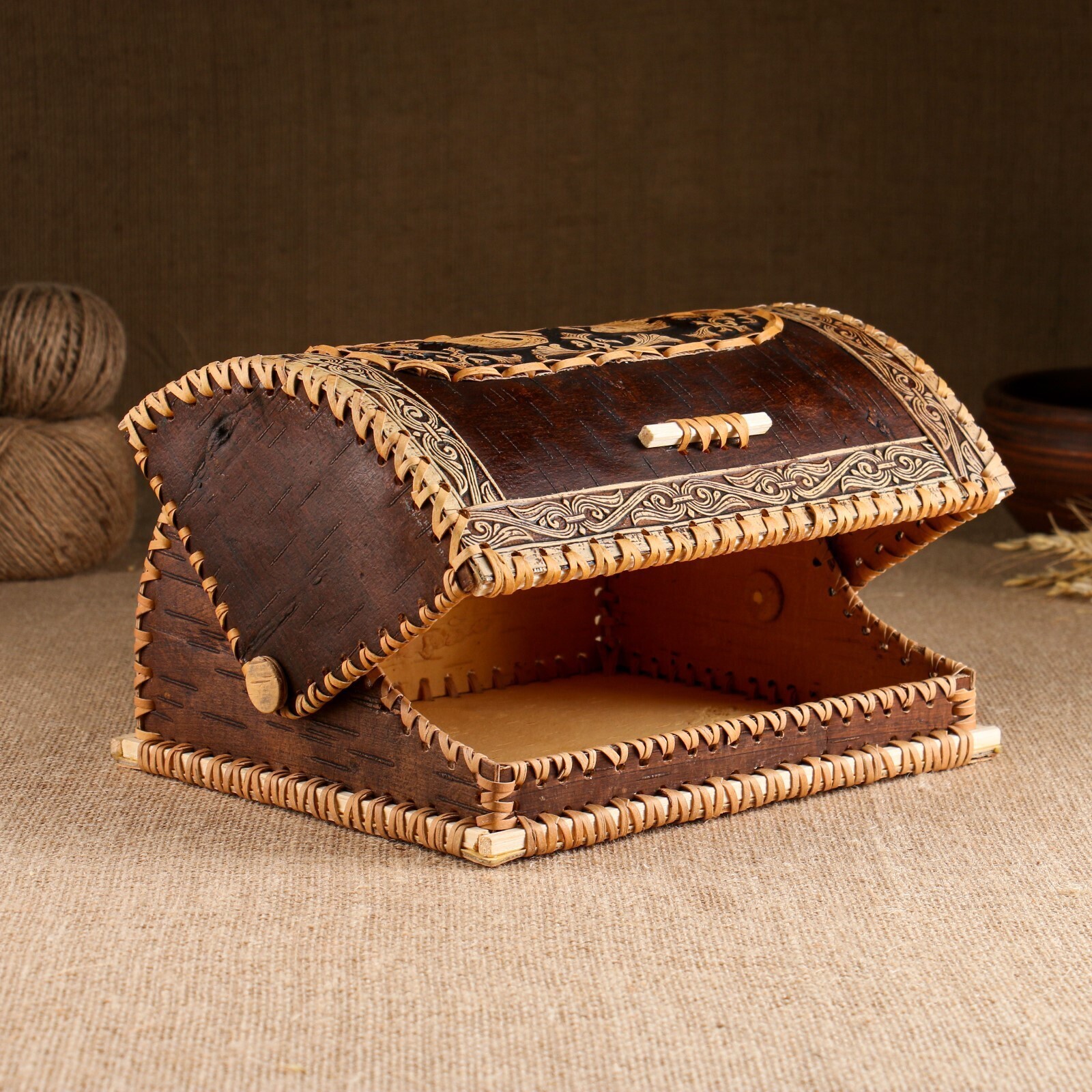 Береста — это верхний слой берёзовой коры. Такая посуда не только украшение кухни, но и полезный экологичный атрибут! Благодаря дёгтю в составе она является прекрасным природным антисептиком. Продукты в берестяной посуде долго не портятся, сохраняют свежесть и вкусовые качества.