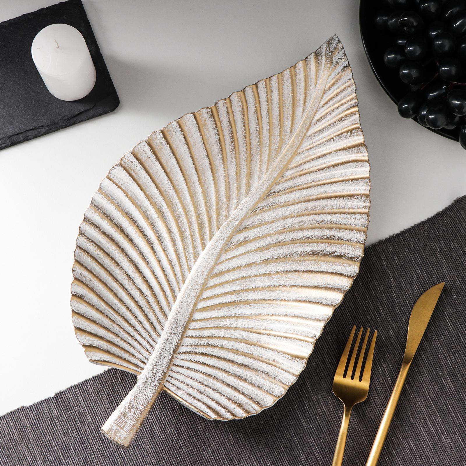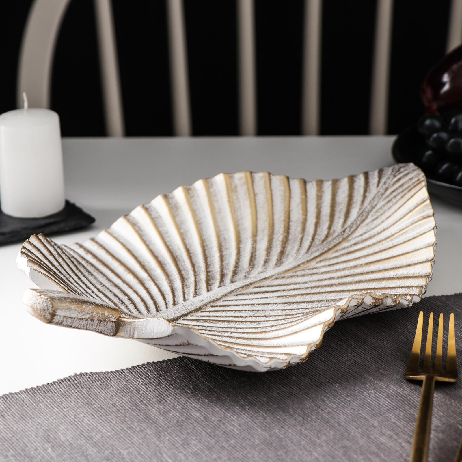 Блюдо для фруктов «Лист», 35,5×20×5 см, цвет золотой с белым