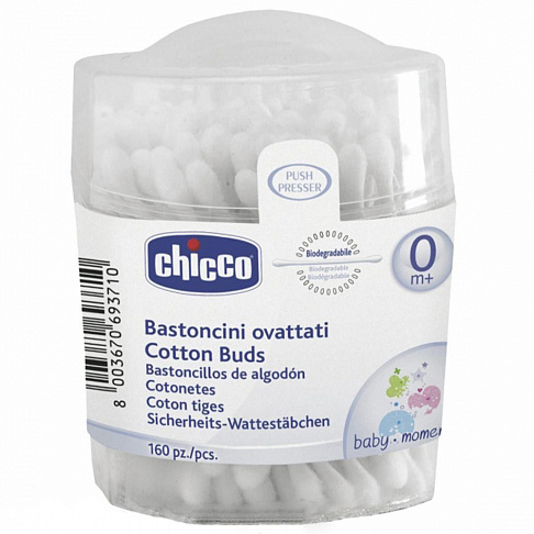 Ватные палочки Chicco идеально подходят для ежедневного гигиенического ухода за новорожденным благодаря особой форме, которая защищает барабанную перепонку и внутренние части уха.