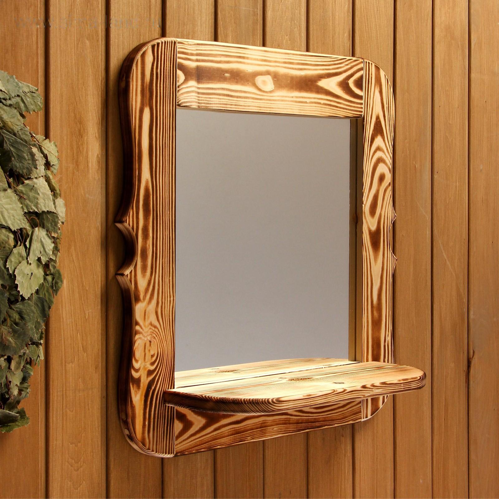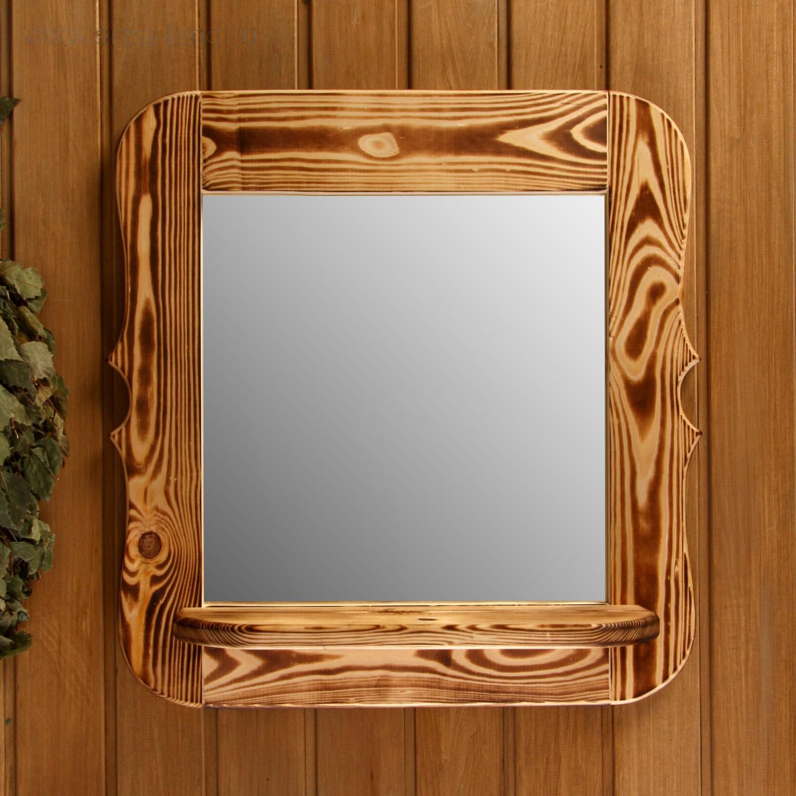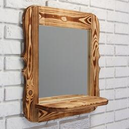 Зеркало резное с полкой, обожжённое, 53×53×1,6 см
