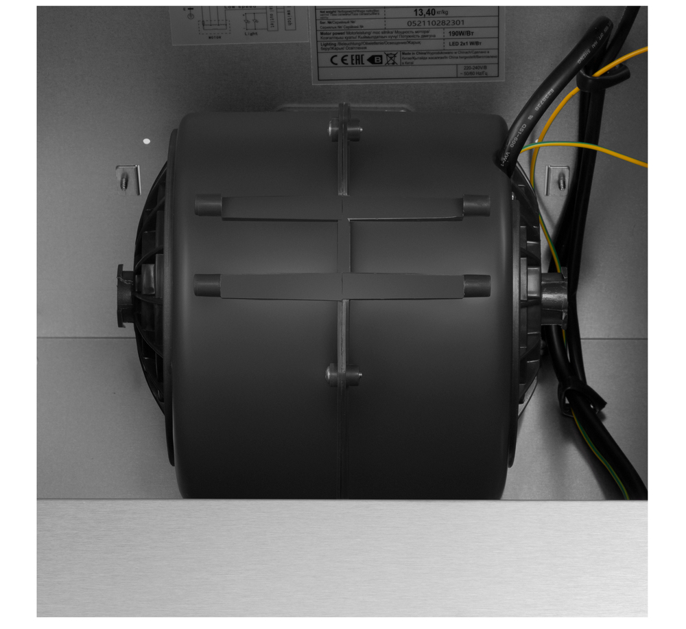 Мощность мотора 190 Вт позволяет достигнуть производительности в 1050 м3/ч, При работе вытяжки на самой высокой скорости уровень шума не выше 54 дБ.