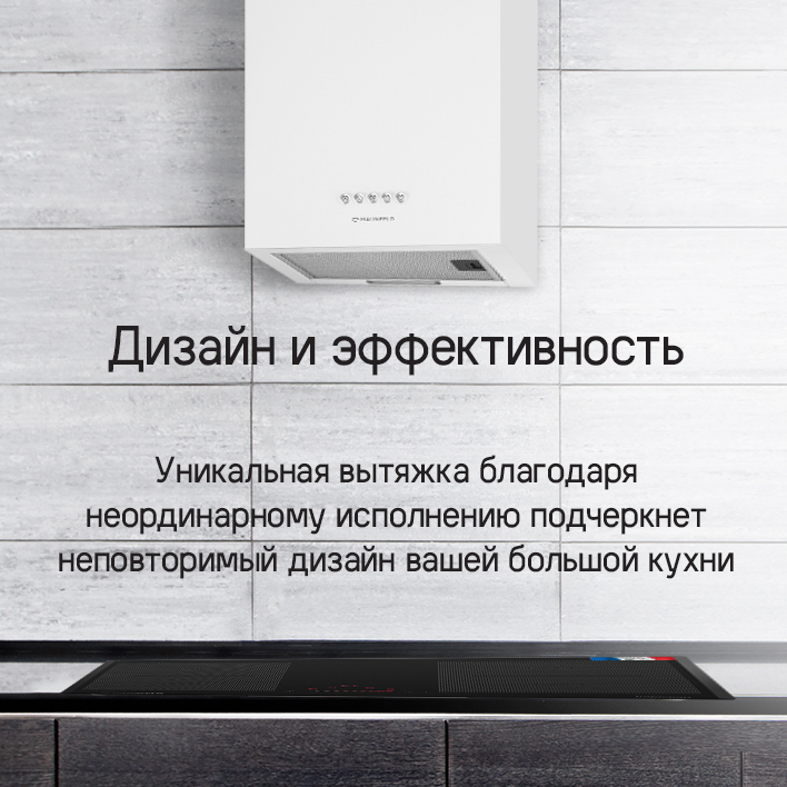 Высокая производительность 1000 м3 /ч обеспечит чистый воздух во время готовки и после нее.