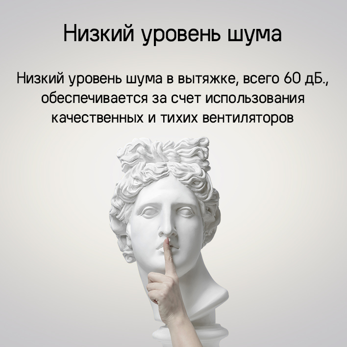 Вытяжка с мощным мотором 180 Вт и оптимальным уровнем шума 60 дБ, позволит полностью насладиться процессом приготовления.