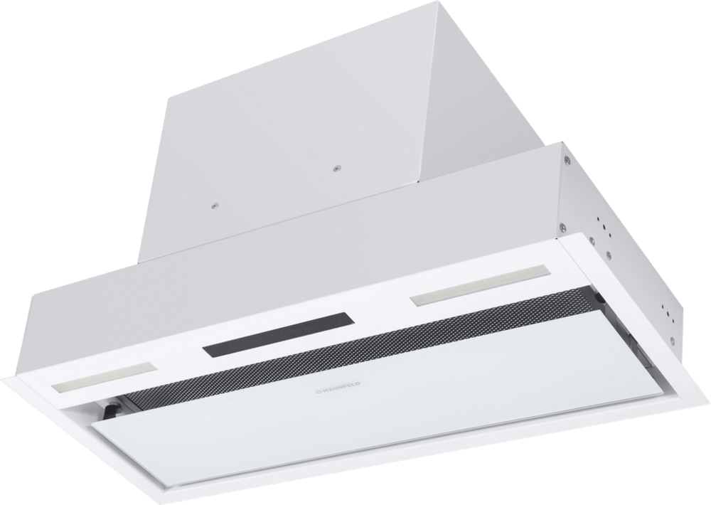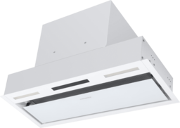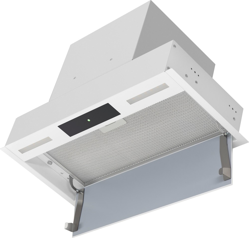 Ультрасовременная встраиваемая кухонная вытяжка шириной 60 см - это беспрецедентное решение для кухни очень большой площади (до 50 кв.м). Модель монтируется в навесной шкаф над поверхностью плиты.