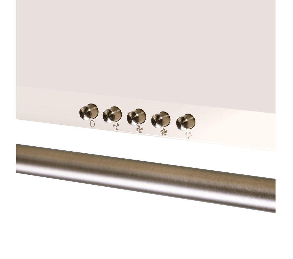 Классическая купольная кухонная вытяжка шириной 60 см монтируется на стену над поверхностью плиты. Работает в двух режимах.