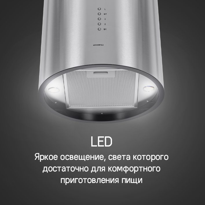 Модель оснащена ярким светодиодным освещением, света которого достаточно для комфортного приготовления пищи на плите.