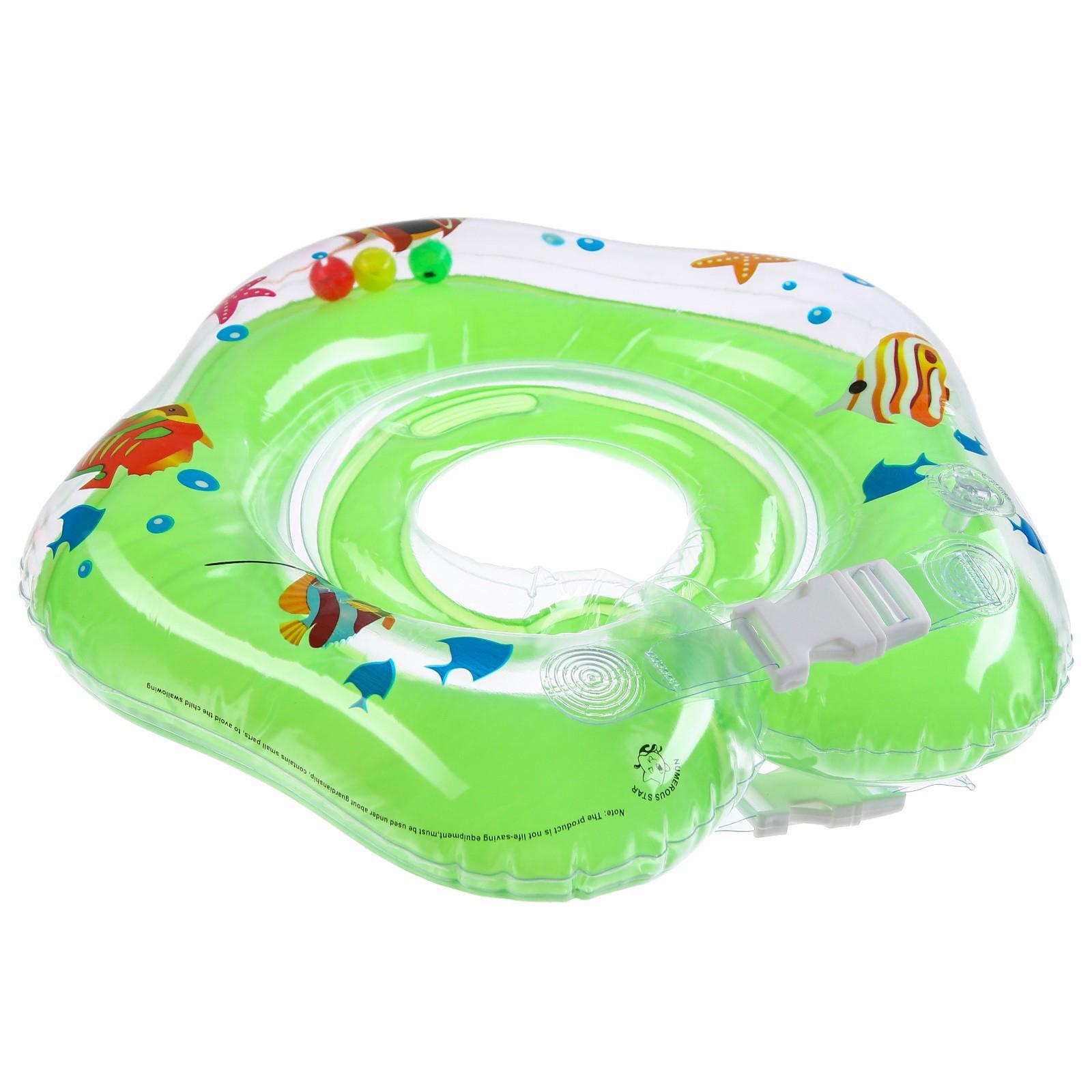 Круг детский на шею, для купания, «Рыбки», с погремушками, двухкамерный, цвет зеленый