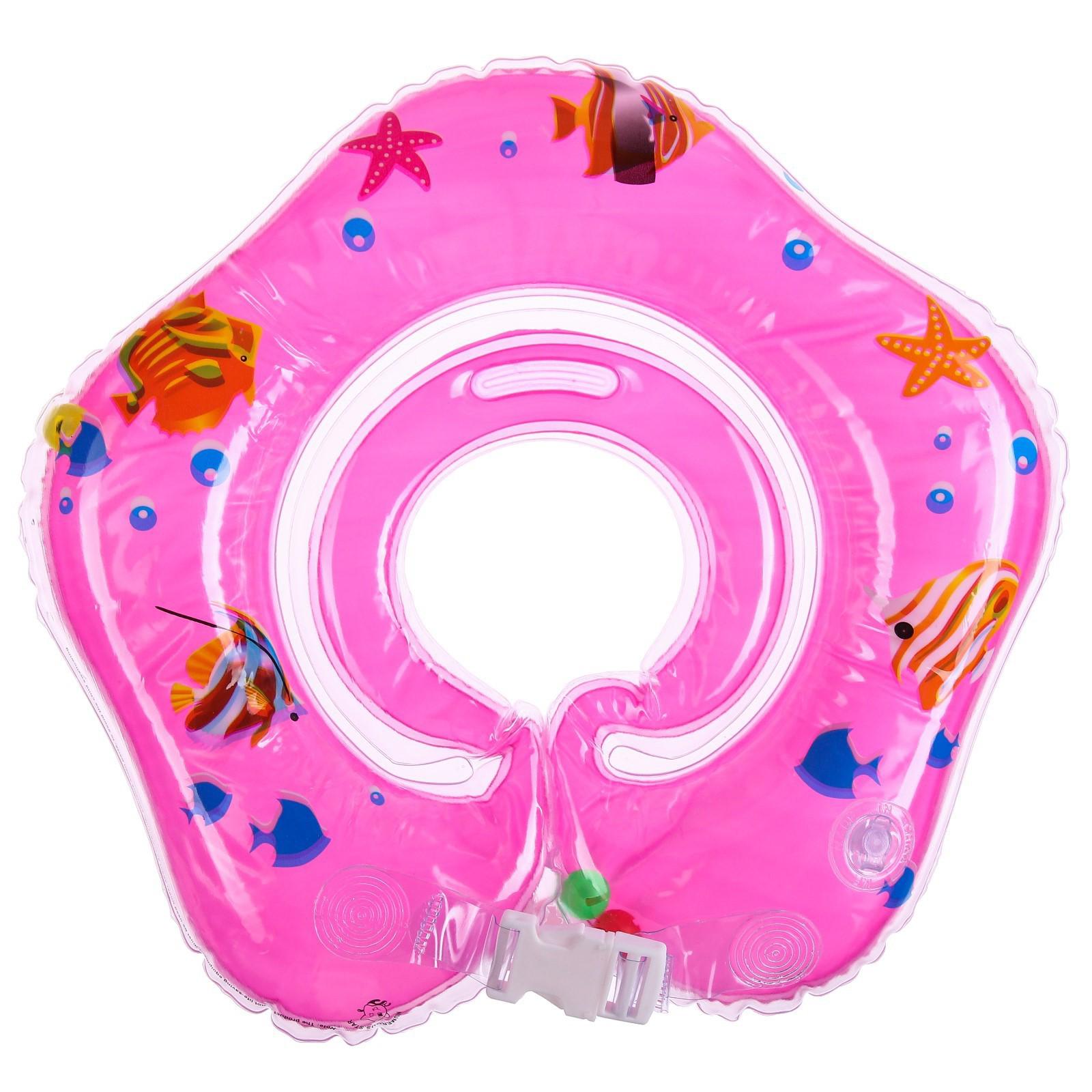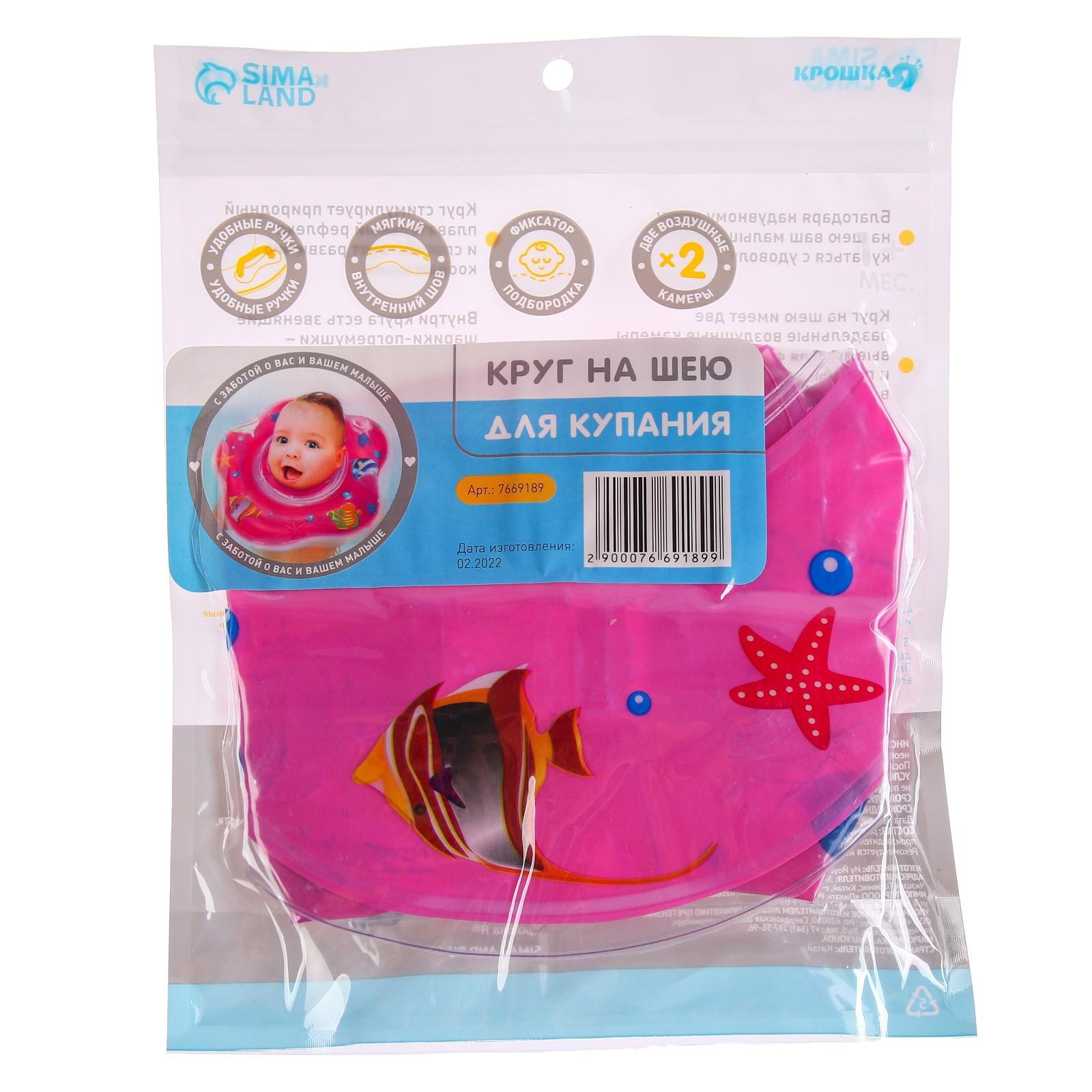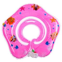 Круг детский на шею, для купания, «Рыбки», с погремушками, двухкамерный, цвет розовый