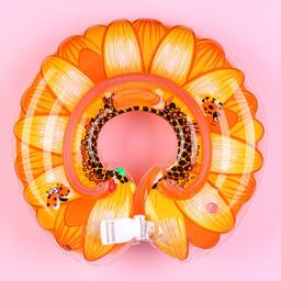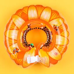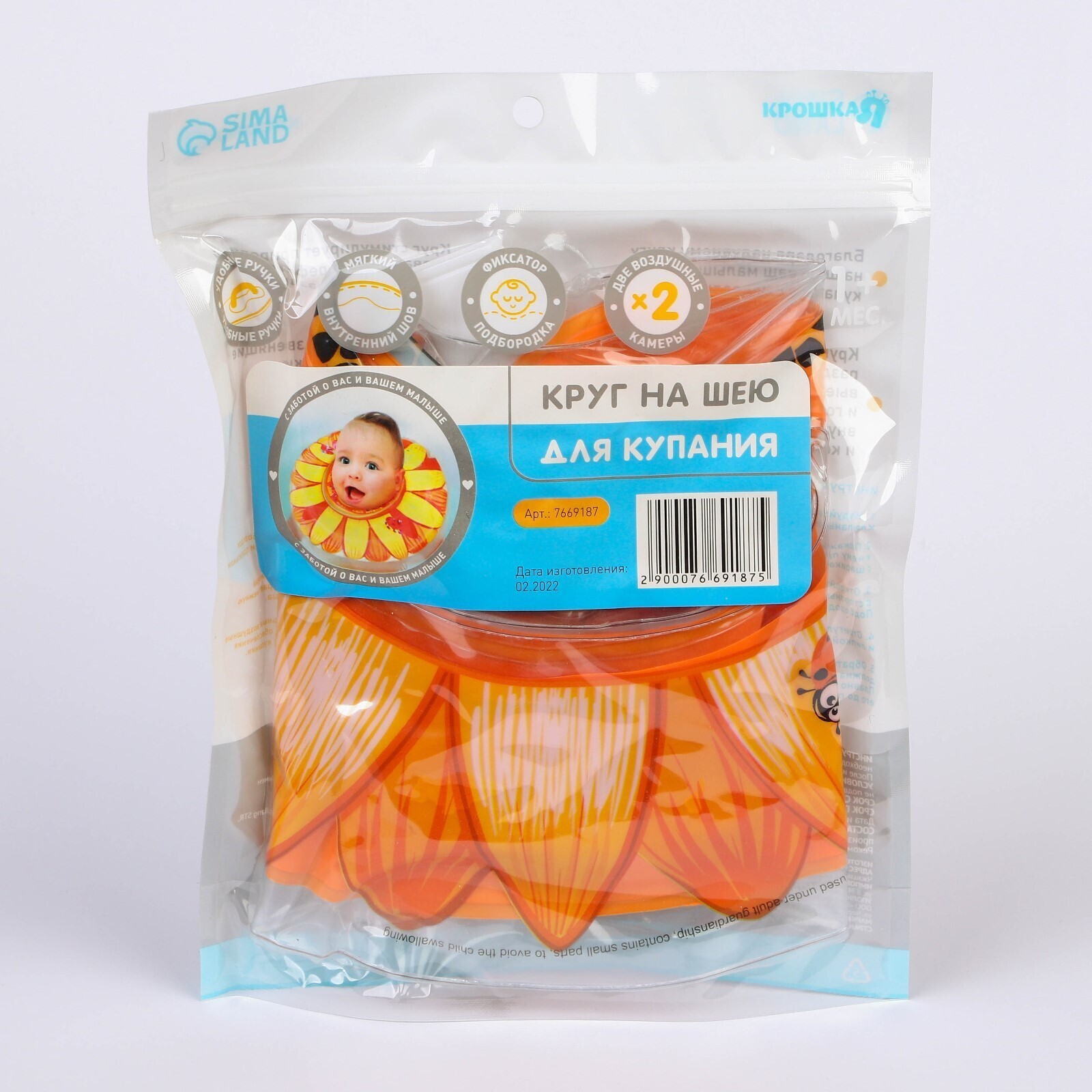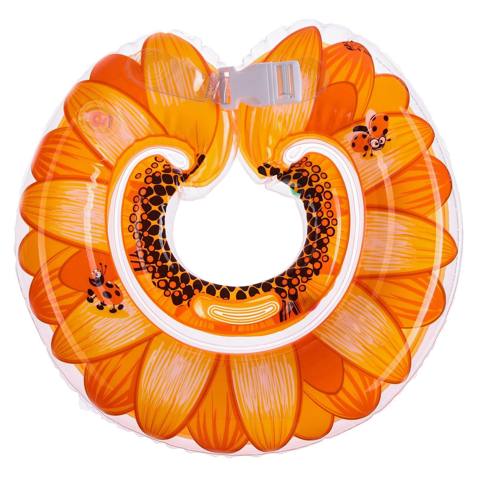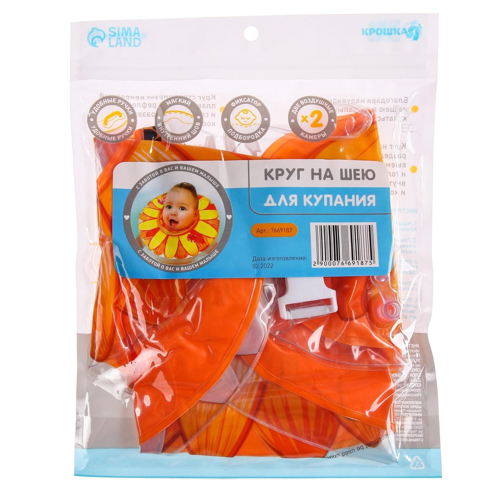 Круг детский на шею, для купания, «Подсолнух», с погремушками, двухкамерный, цвет оранжевый