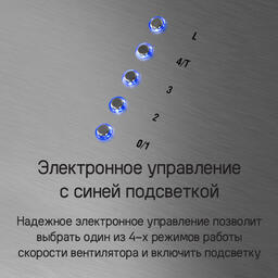 Надежное электронное управление позволит выбрать один из 4-х режимов работы скорости вентилятора и включить подсветку.