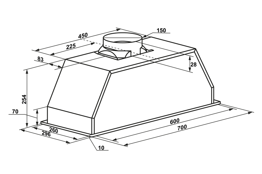 Мотор мощностью 102 Вт. Максимальная производительность – 800 м3/ч. Использование высококачественных материалов обеспечивает низкий уровень шума работы вытяжки – не более 49 дБ.