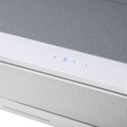 Дисплей сенсорного управления находится по центру фасада. Вы можете выбрать одну из 4-х скоростей работы вентилятора, выставить таймер и включить освещение, состоящее из 2 мощных LED-источников по 3 Вт каждый.