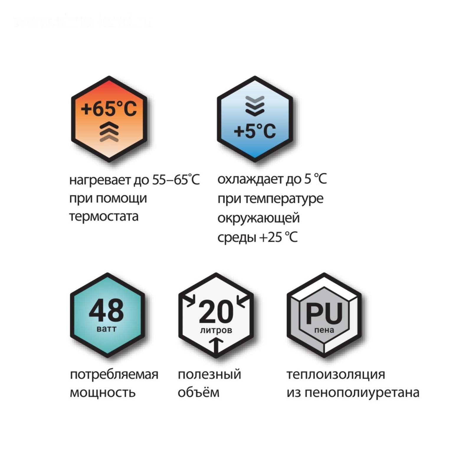 Холодильник автомобильный с функцией подогрева, 12 В/220 В, 20 л