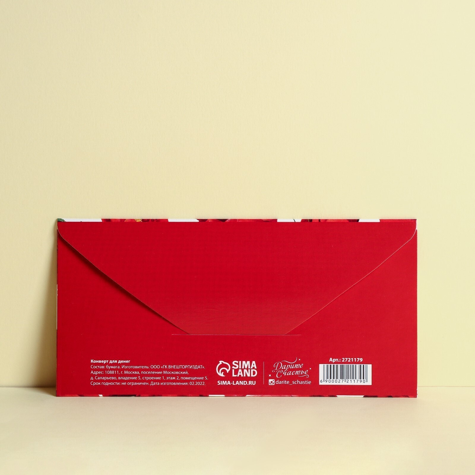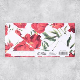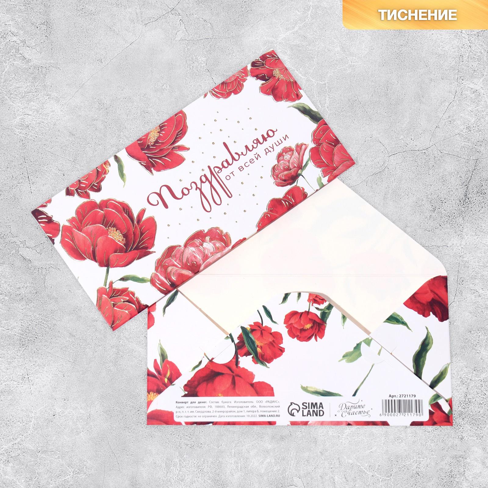 Конверт для денег "Поздравляю от всей души" тиснение, красные цветы, 16,5 х 8 см