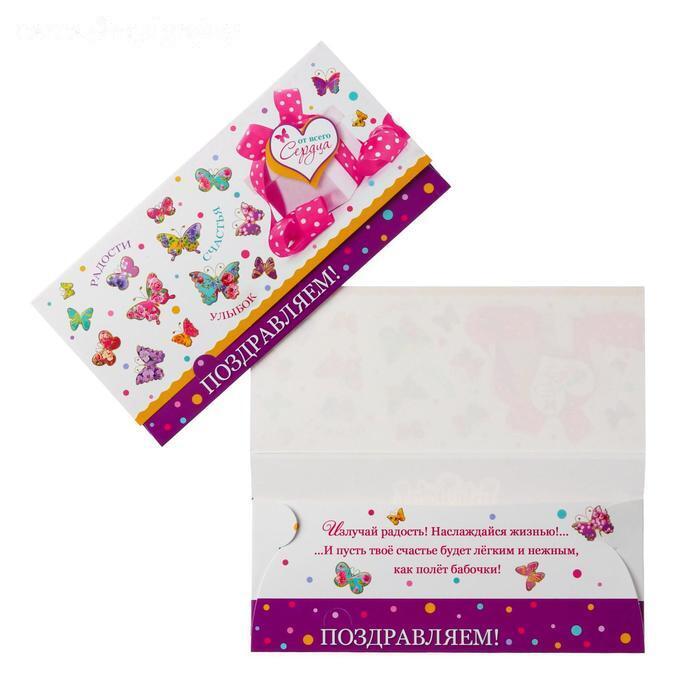 Конверт для денег "Поздравляем!" бабочки, подарки