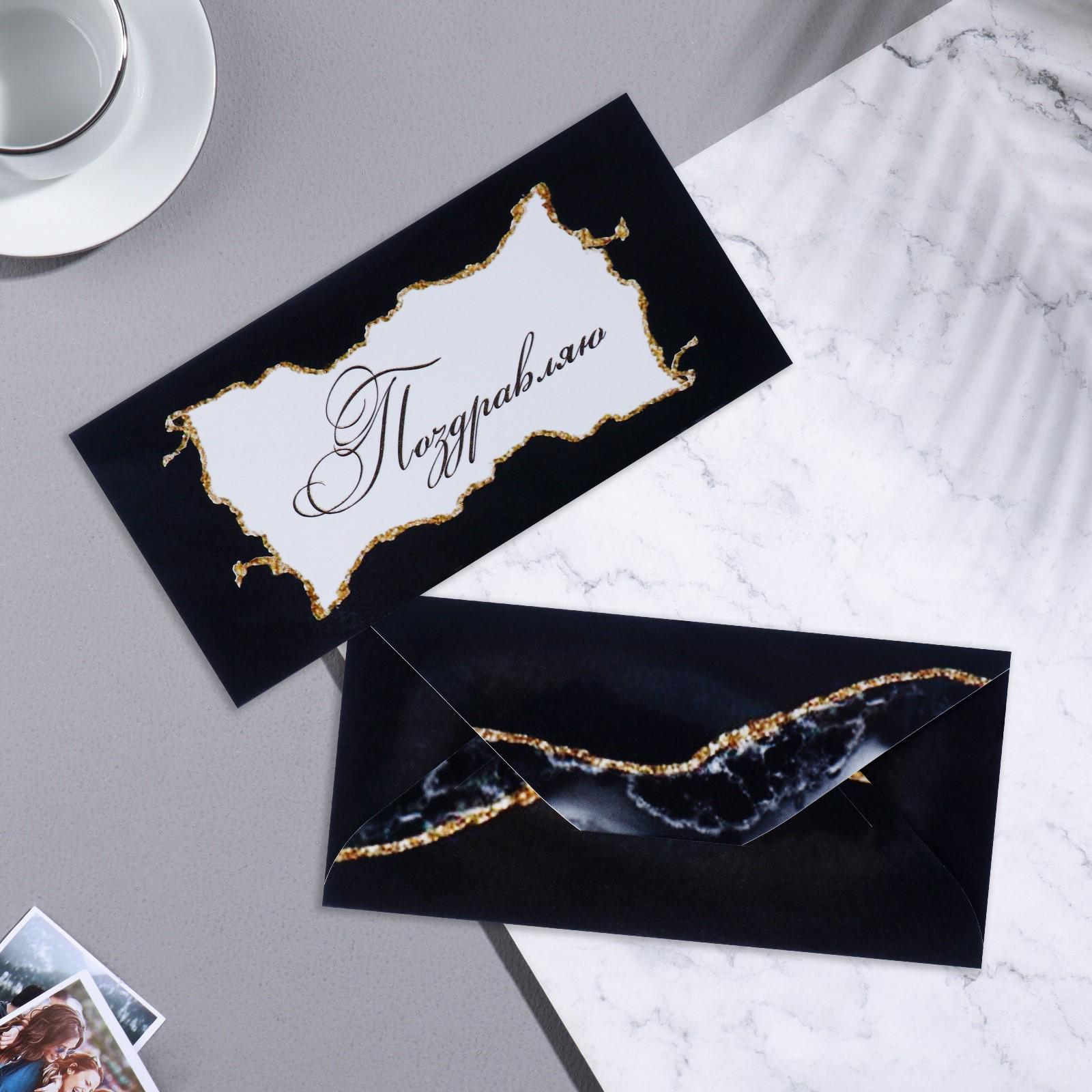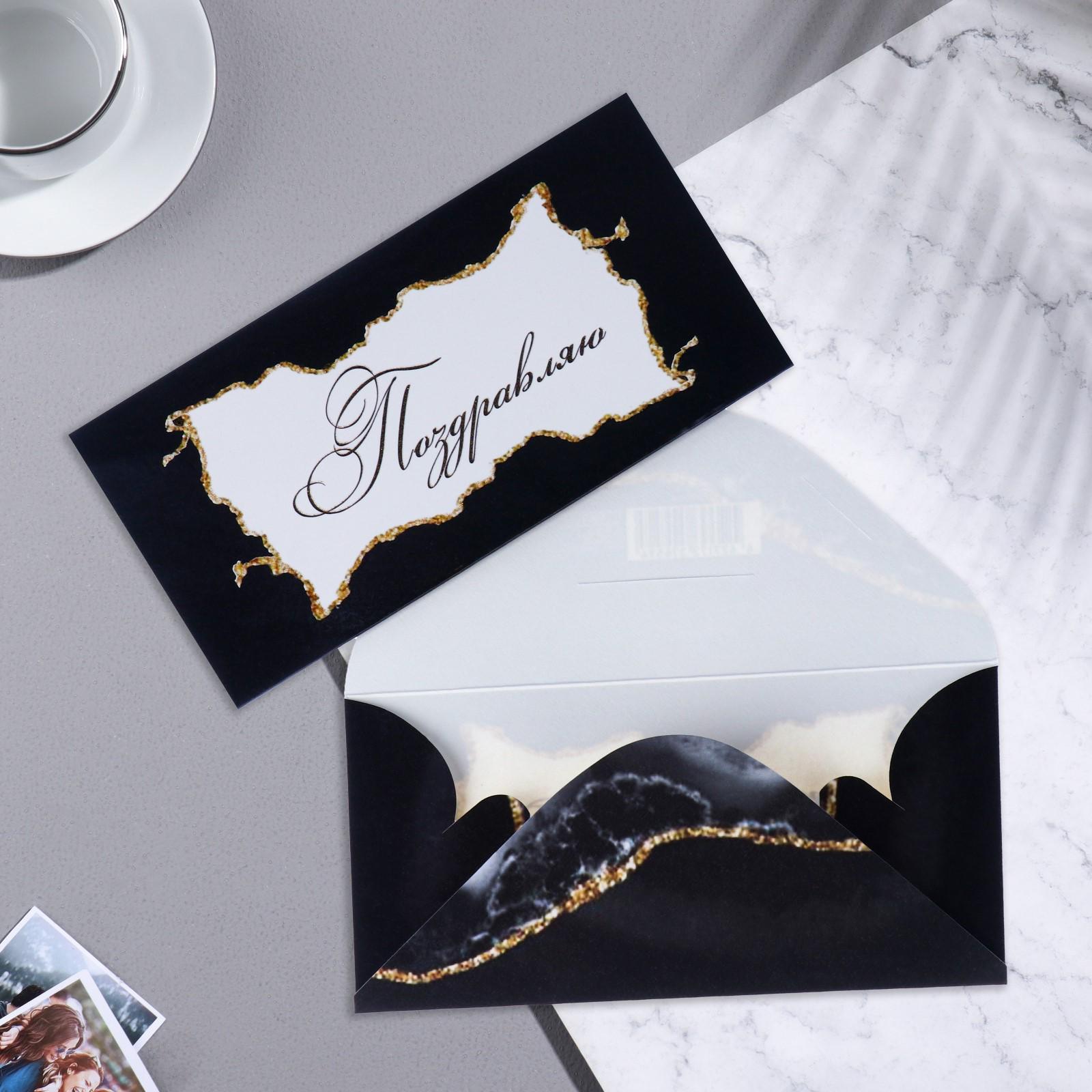 Конверт для денег «Поздравляю!» черным, мрамор, 17х8,5 см