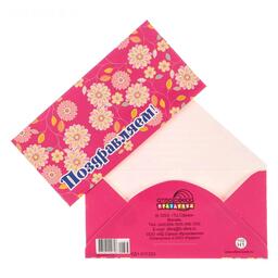 Конверт для денег "Поздравляем!" цветы, розовый фон