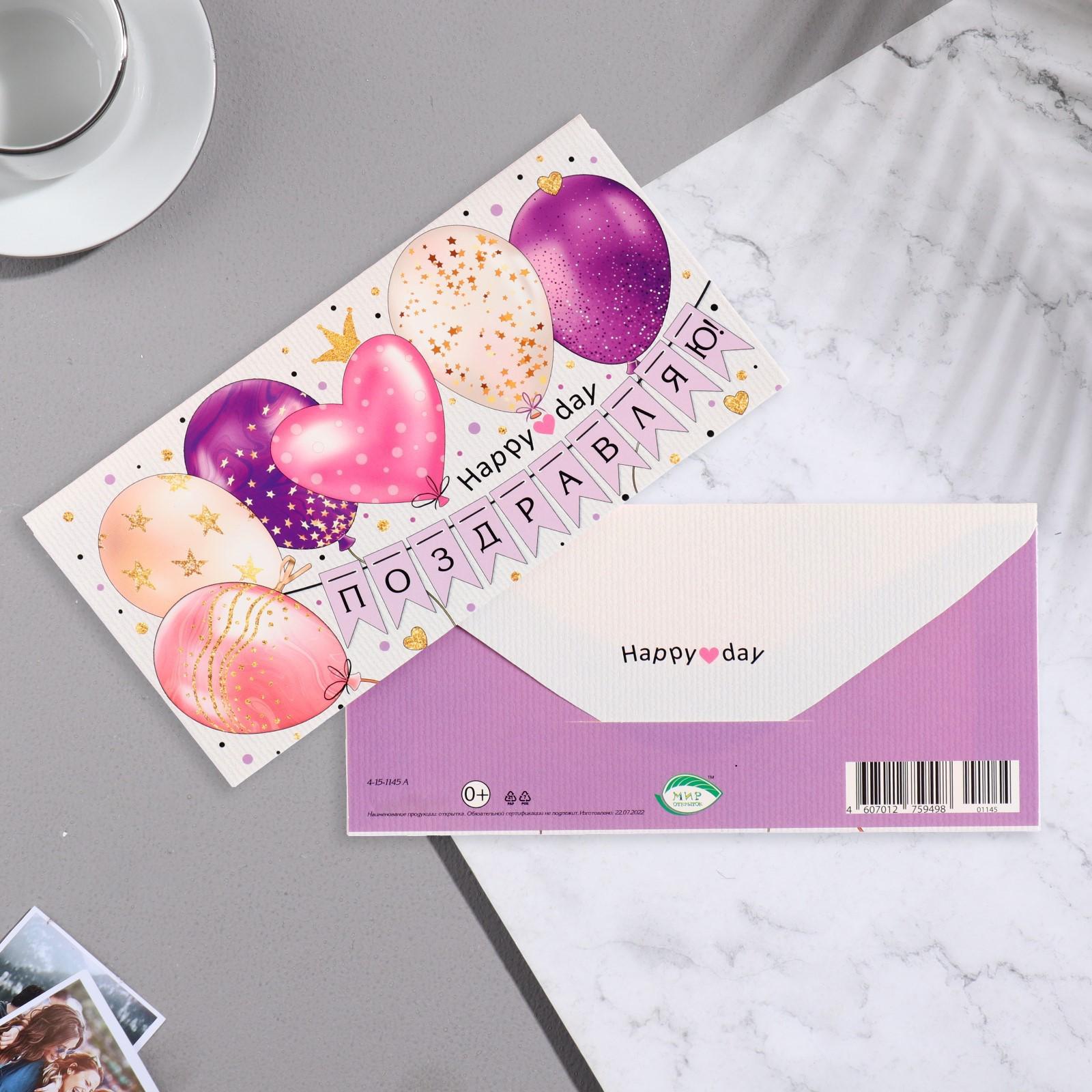 Конвер для денег "Поздравляю!" гирлянда, шары, 16,5х8,5 см