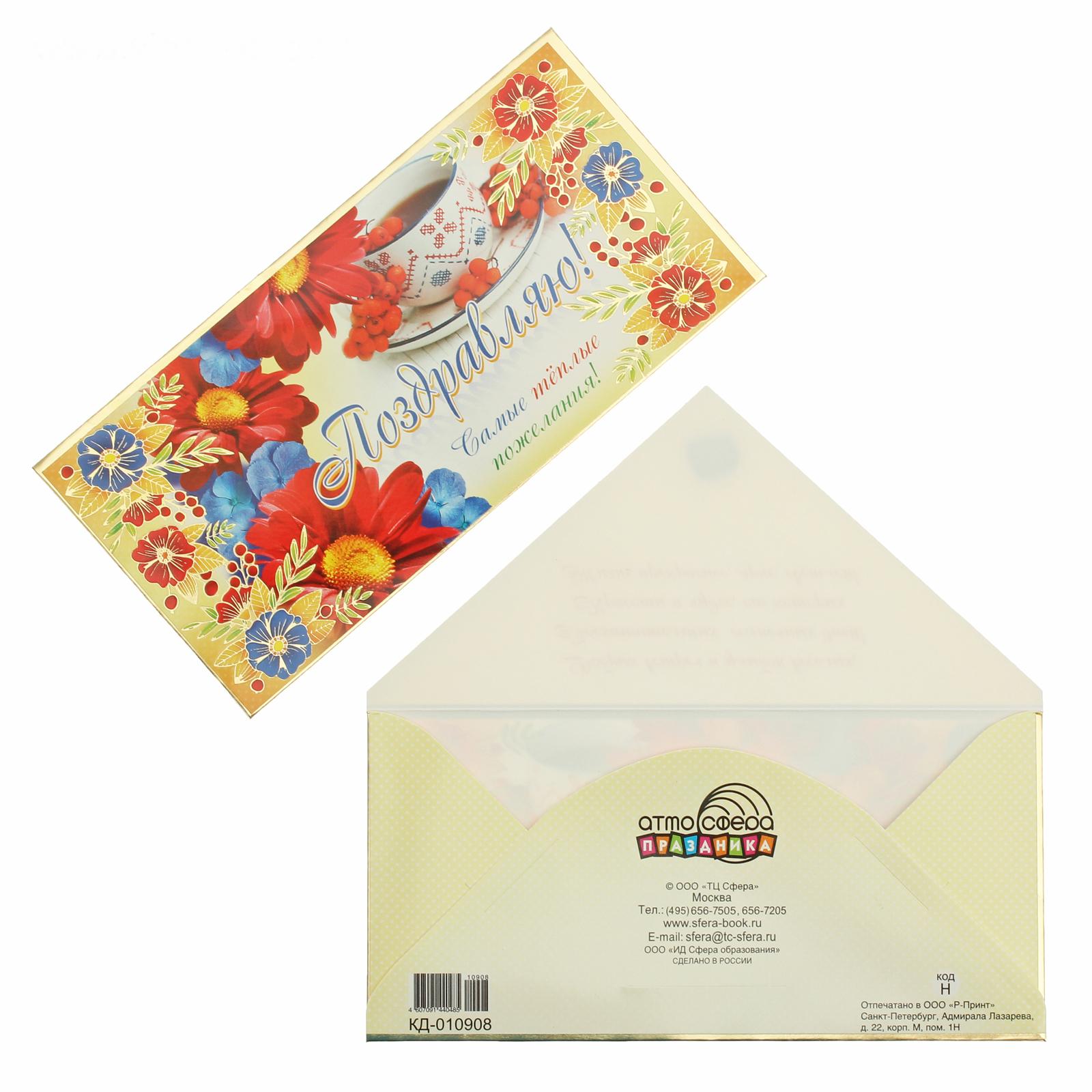 Конверт для денег "Поздравляю!" рябина, чай, цветы