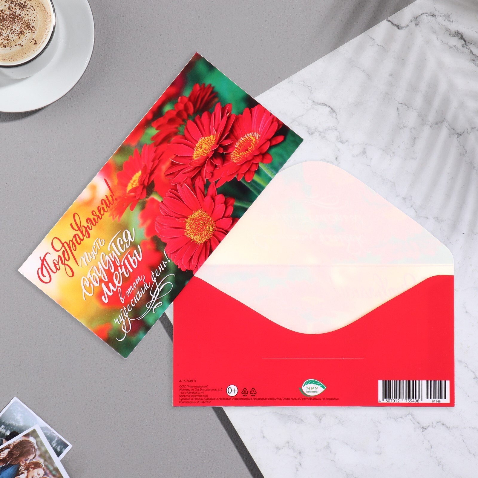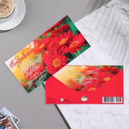 Конверт для денег "Поздравляем!" красные хризантемы, 16,5х8,5 см