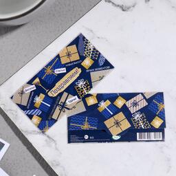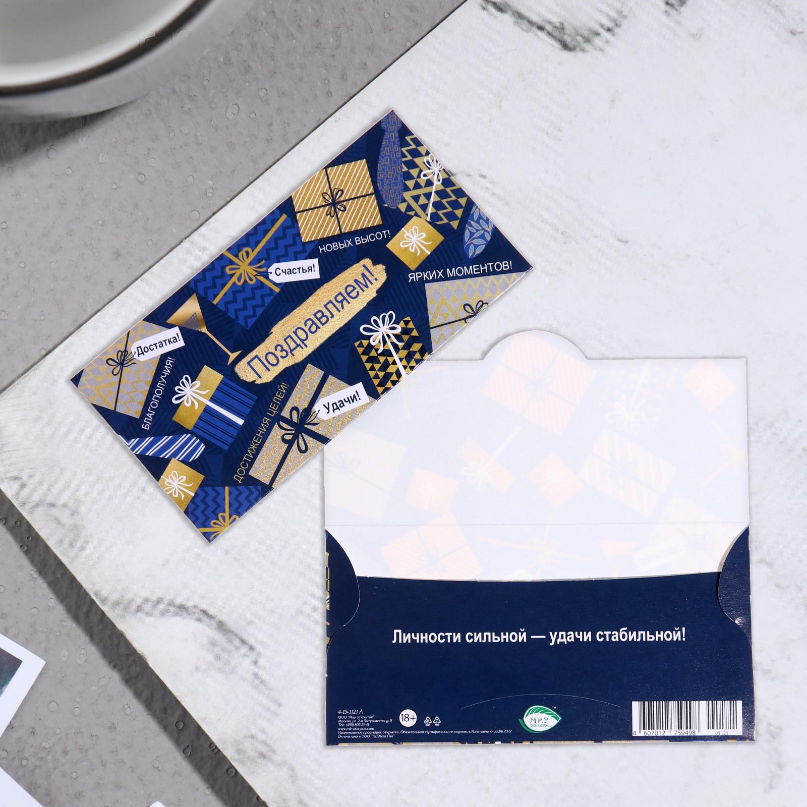 Конверт для денег "Поздравляем!" синий фон, подарки, 16х8см