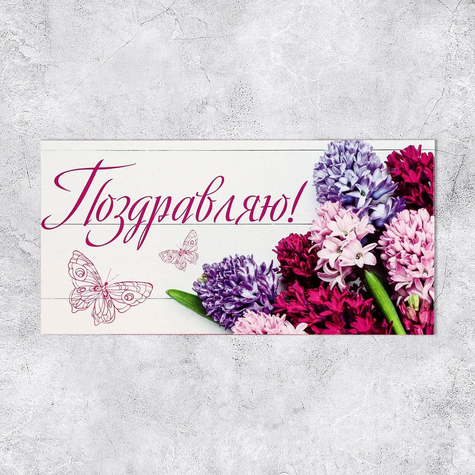 Конверт для денег "Поздравляю", сиреневый букетик, 16,5 х 8 см