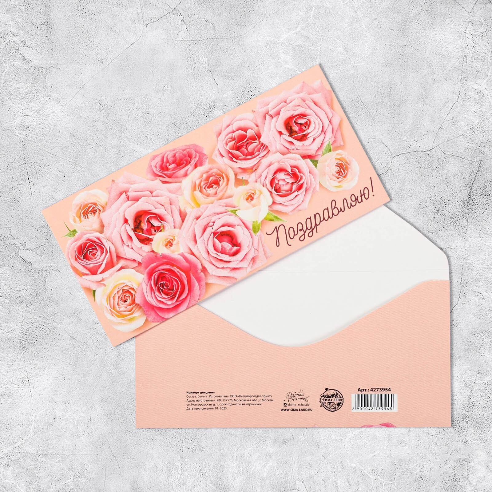 Конверт для денег «Поздравляю!» нежные розы, 16.5 × 8 см