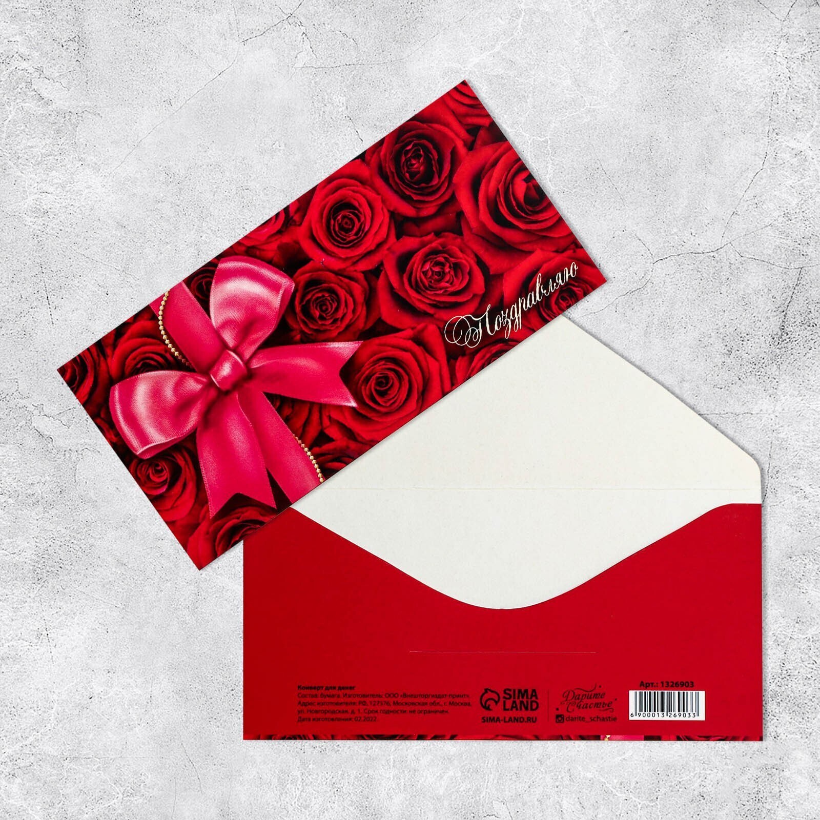 Конверт для денег «Поздравляю», красные розы и бант, 16,5 × 8 см