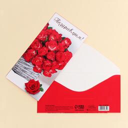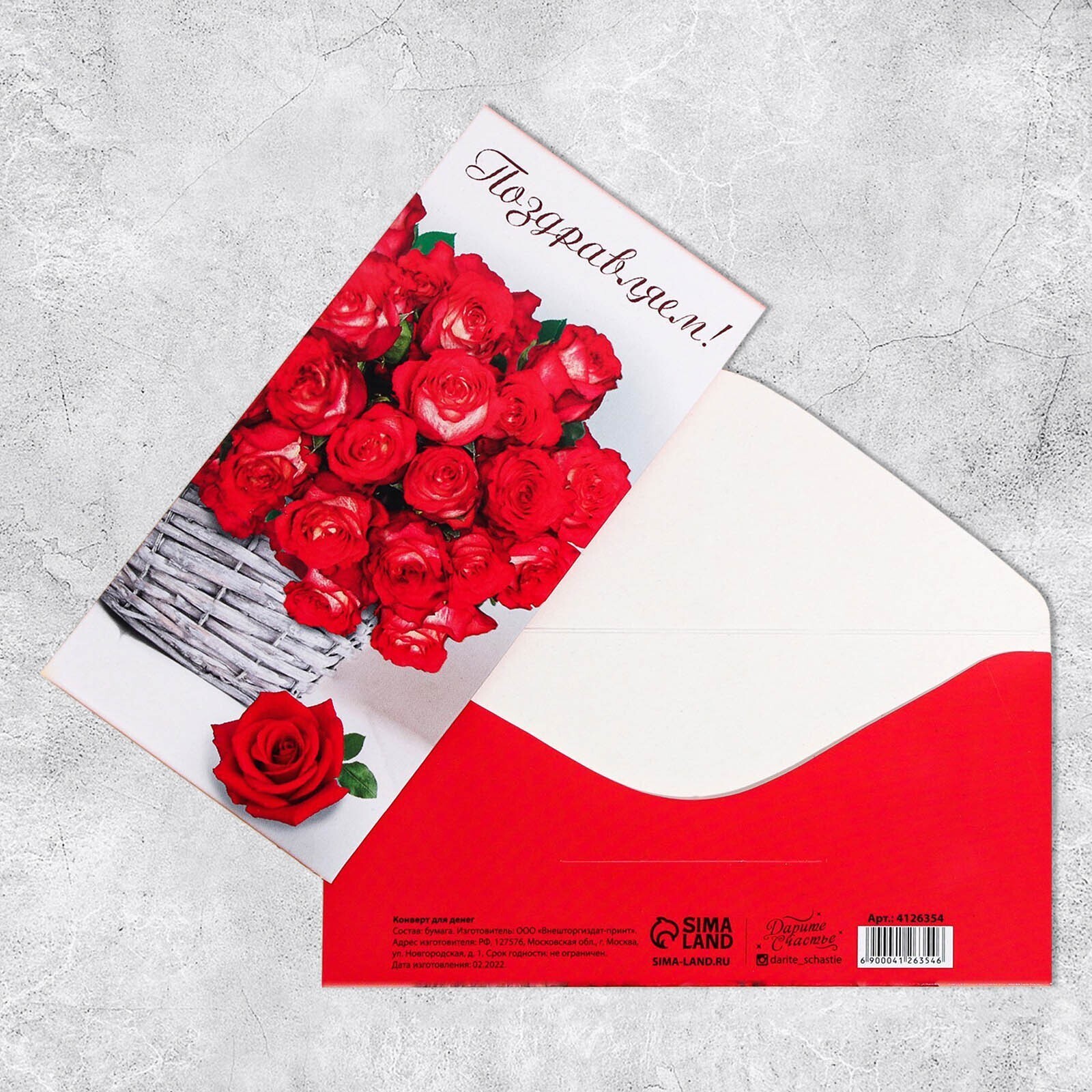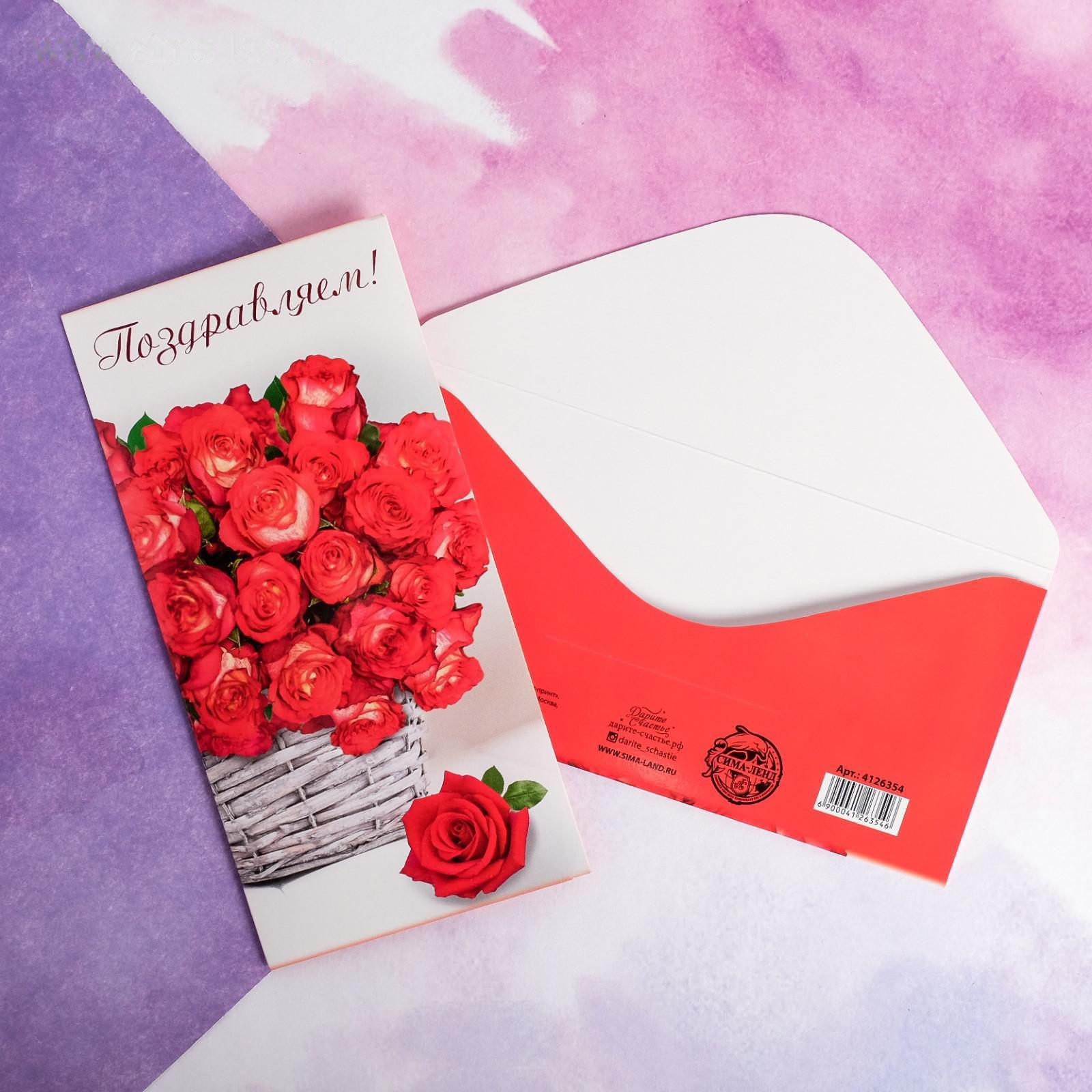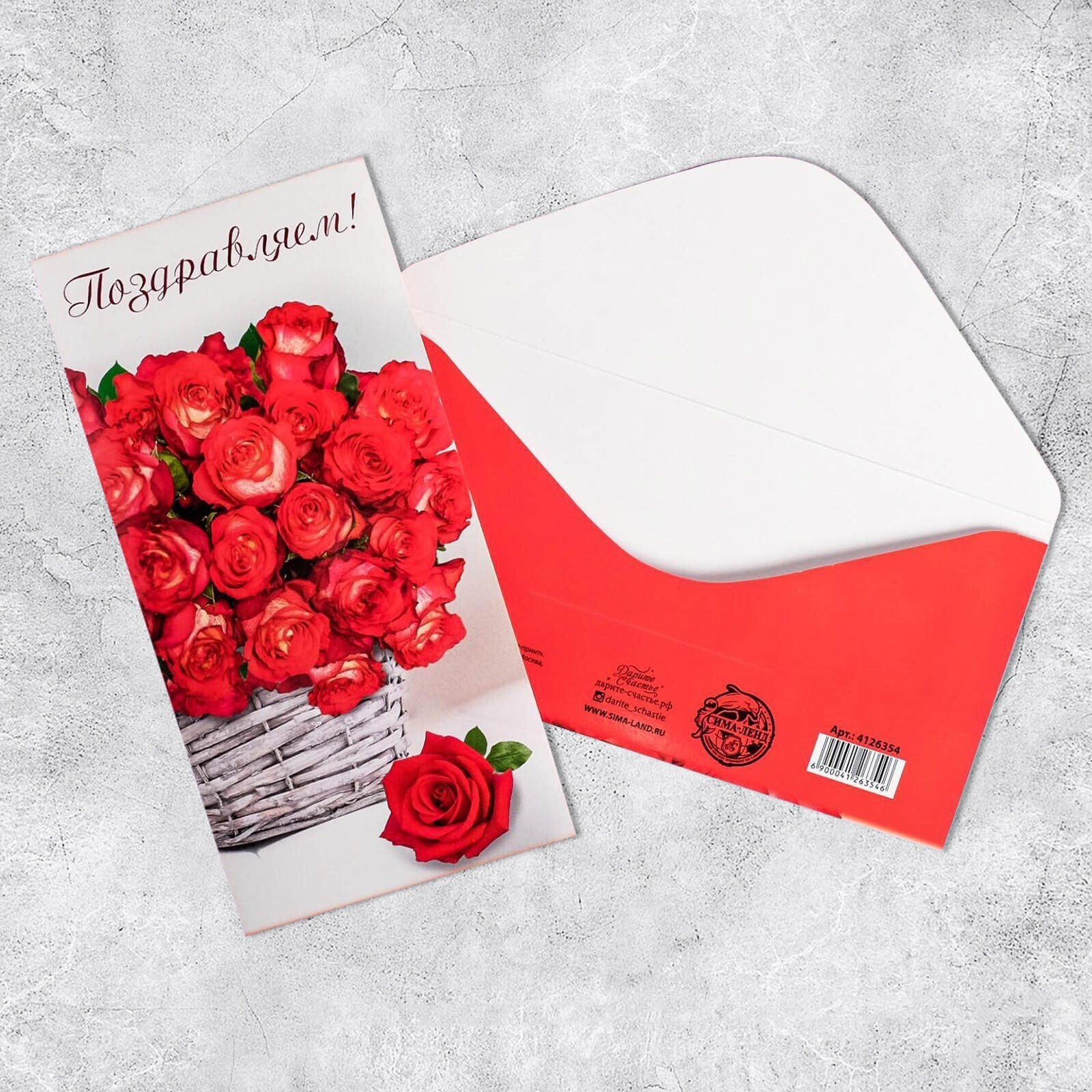 Конверт для денег «Поздравляем!», красные розы, 16.5 × 8 см