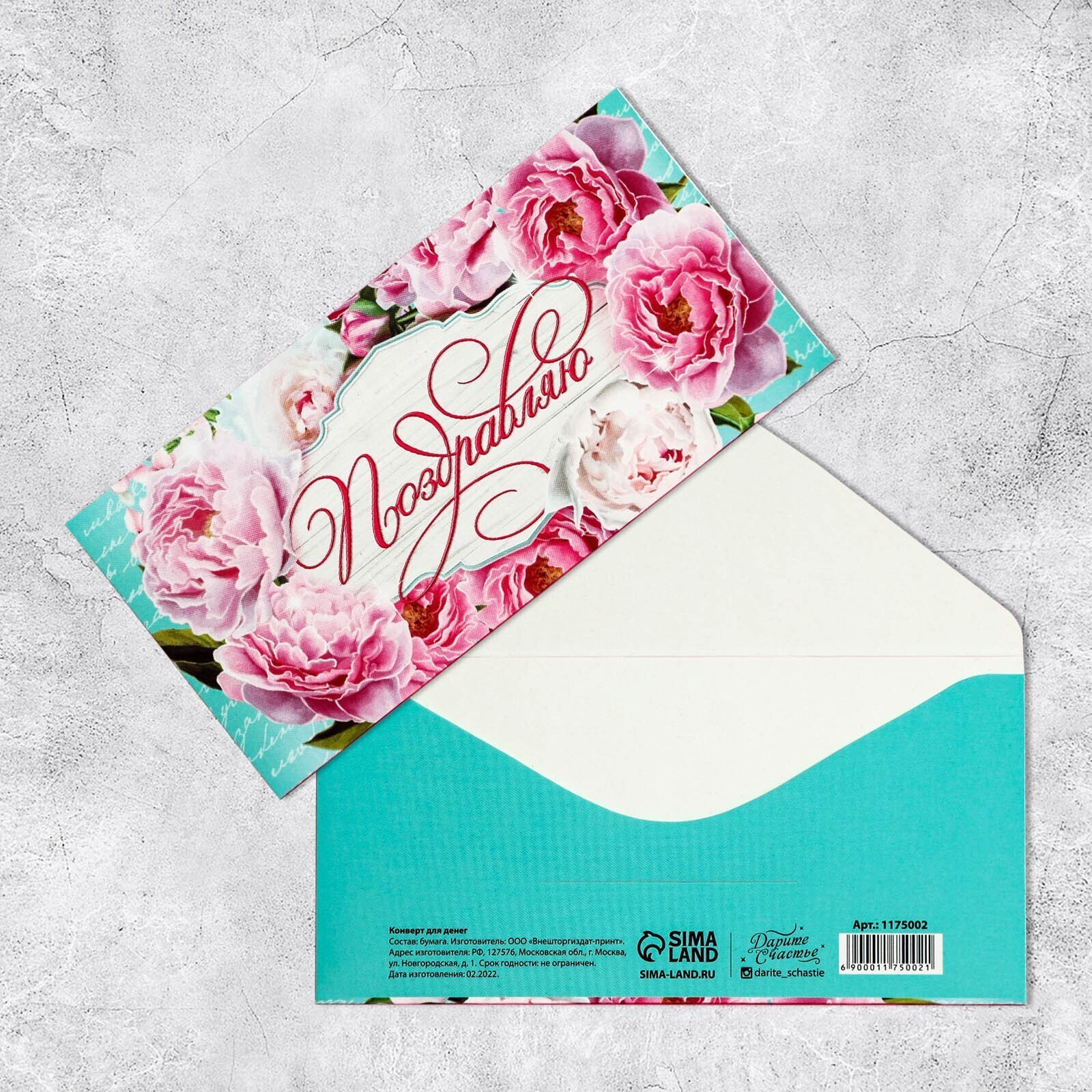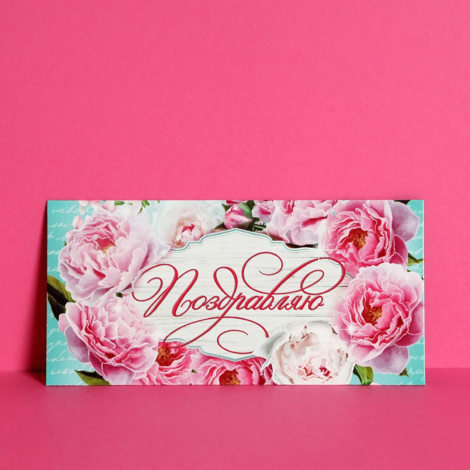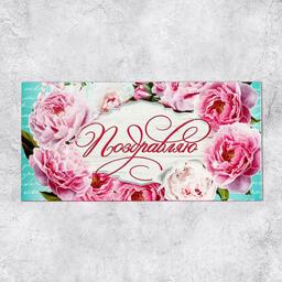 Конверт для денег «Поздравляю», пионы, 16,5 × 8 см