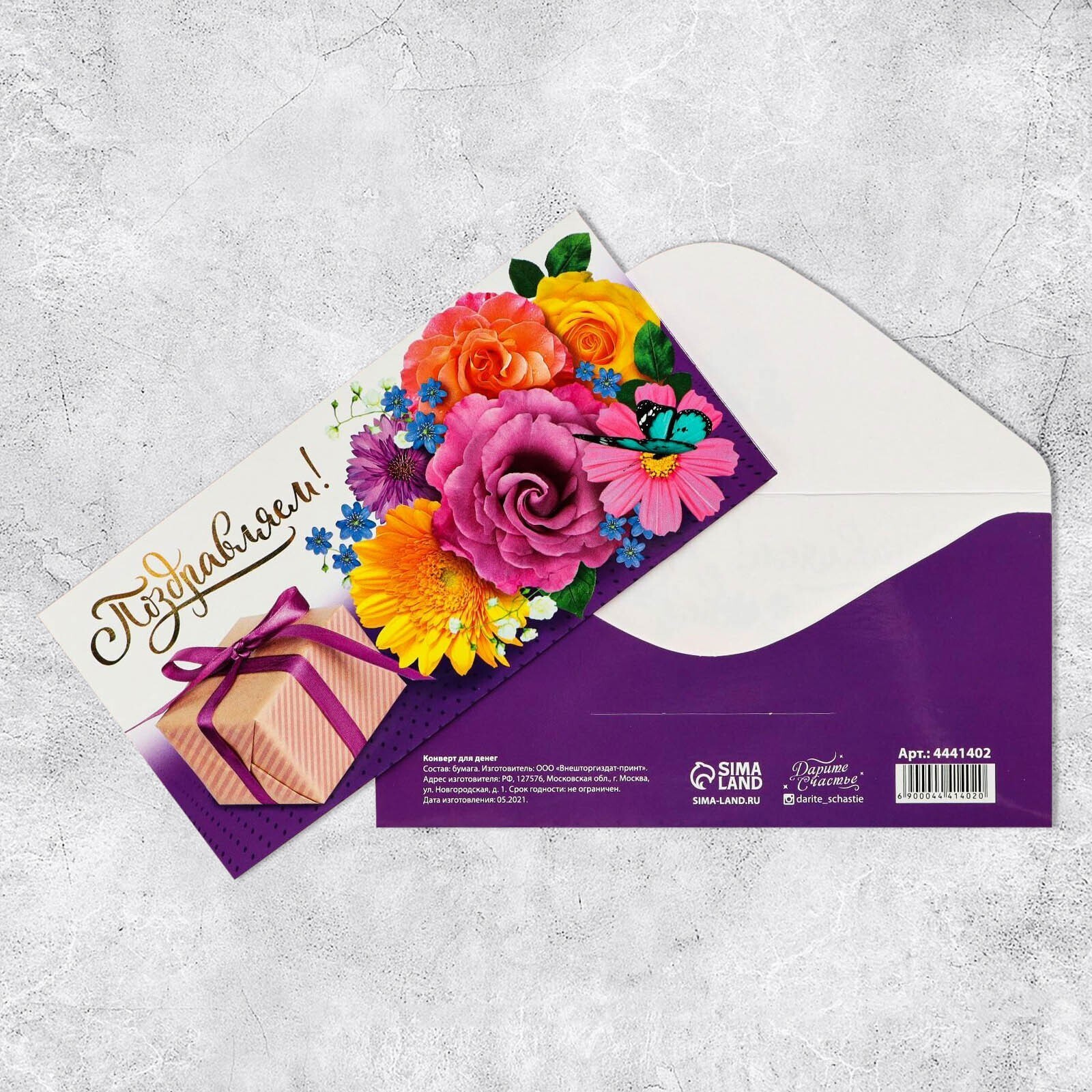 Конверт для денег «Поздравляем!» цветы, 16.5 × 8 см
