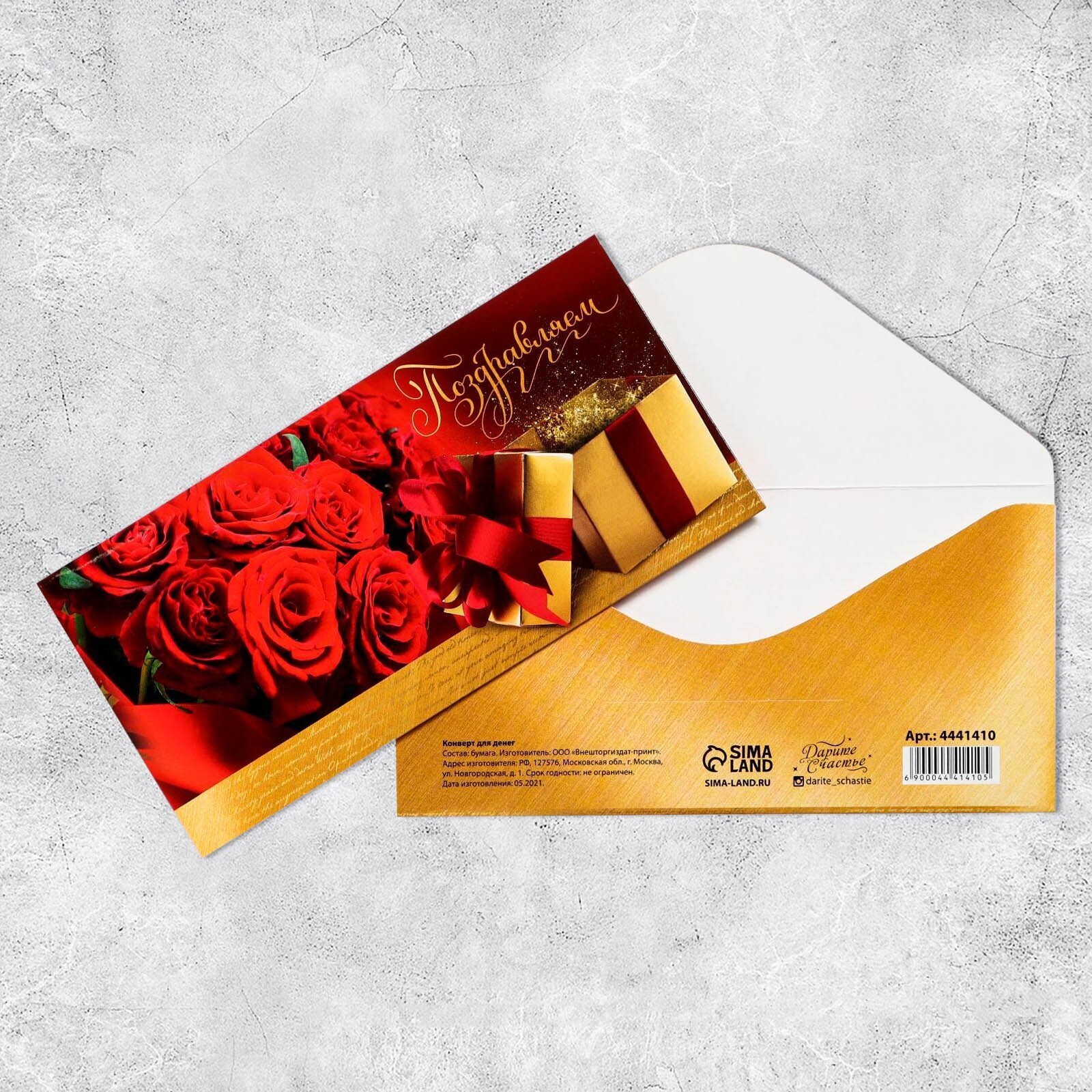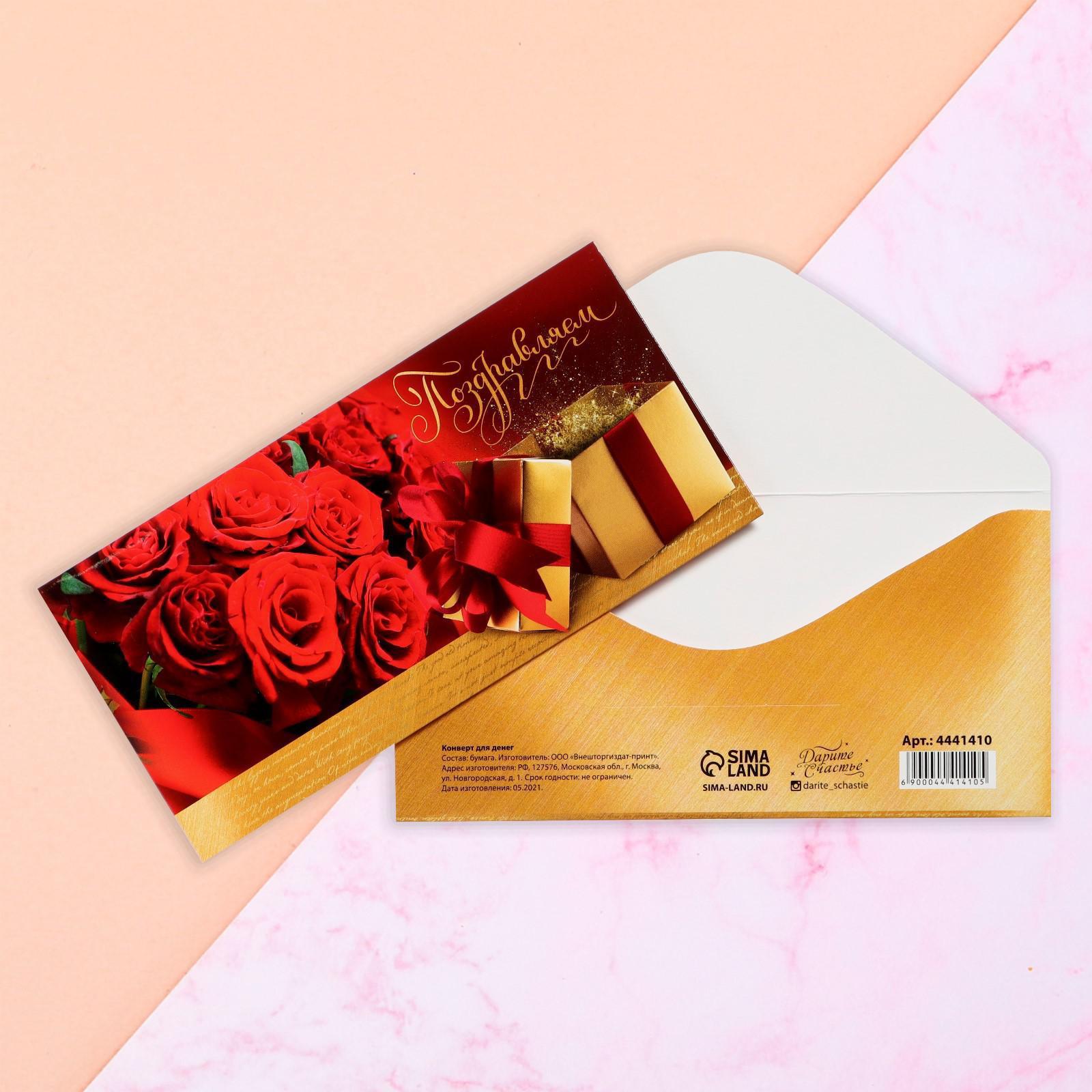 Конверт для денег «Поздравляем!» розы, 16.5 × 8 см
