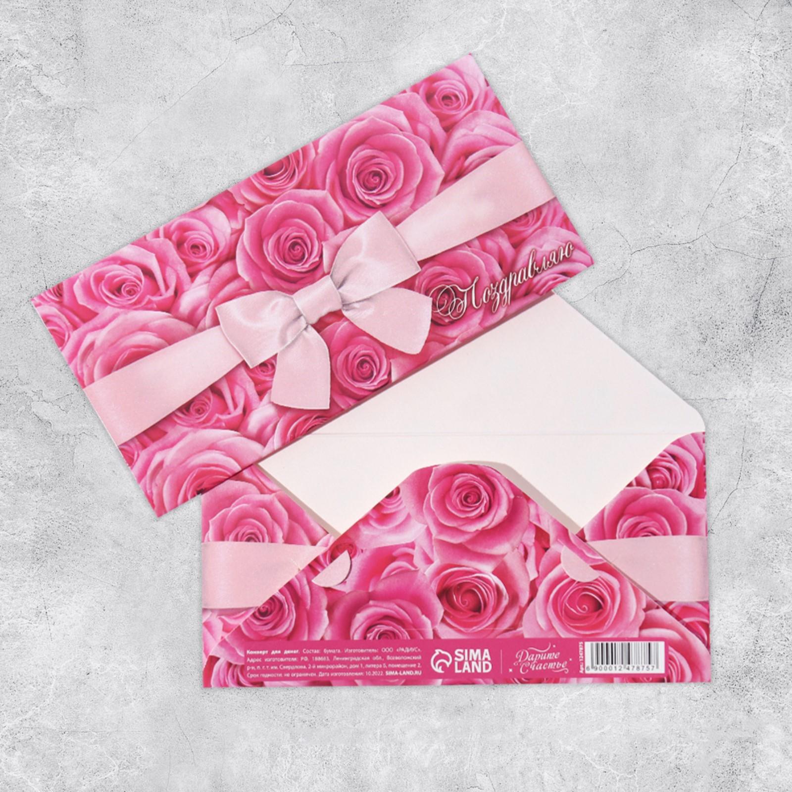 Конверт для денег «Поздравляю», розовый бант, 16,5 × 8 см