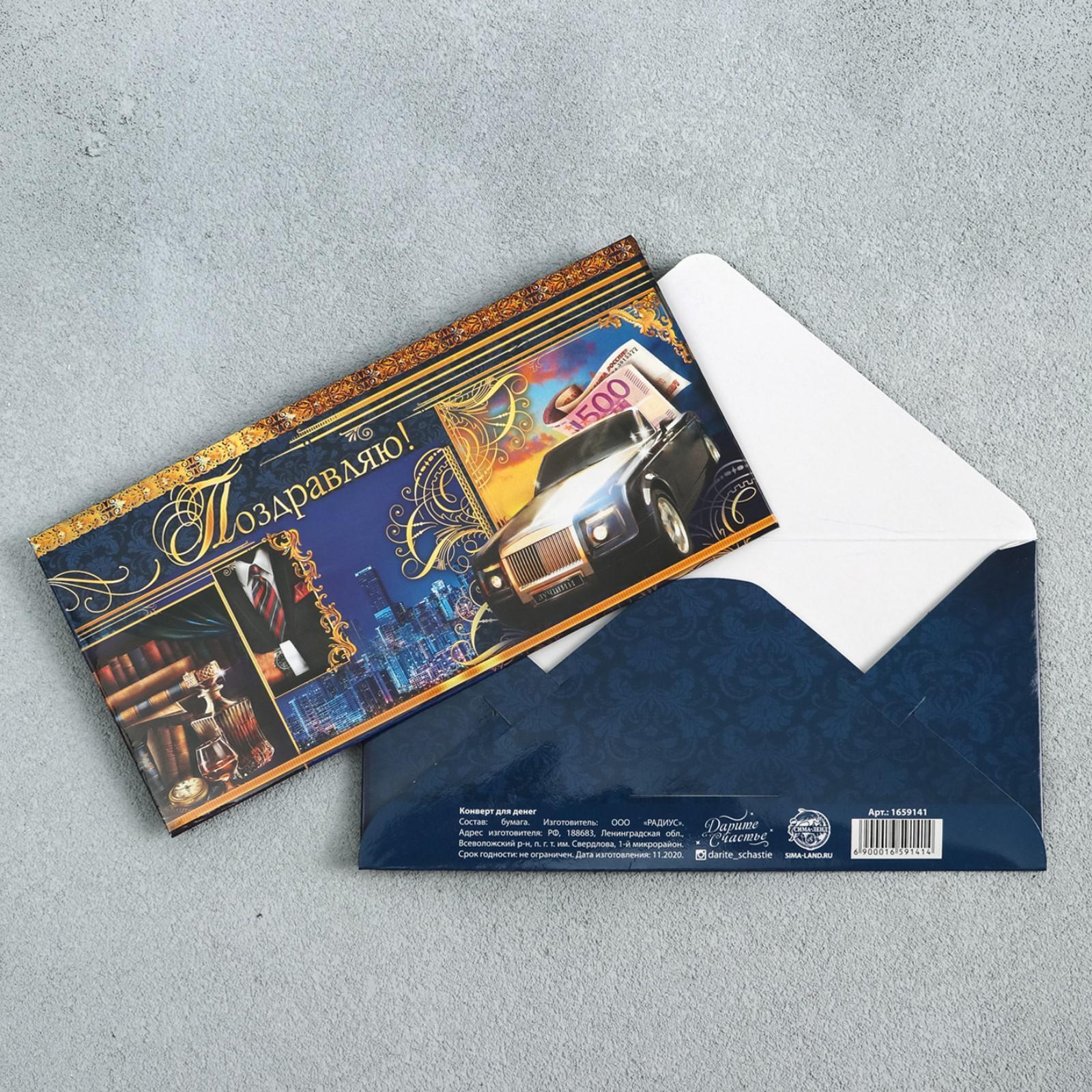 Конверт для денег «Поздравляю», мужские атрибуты, 16,5 × 8 см