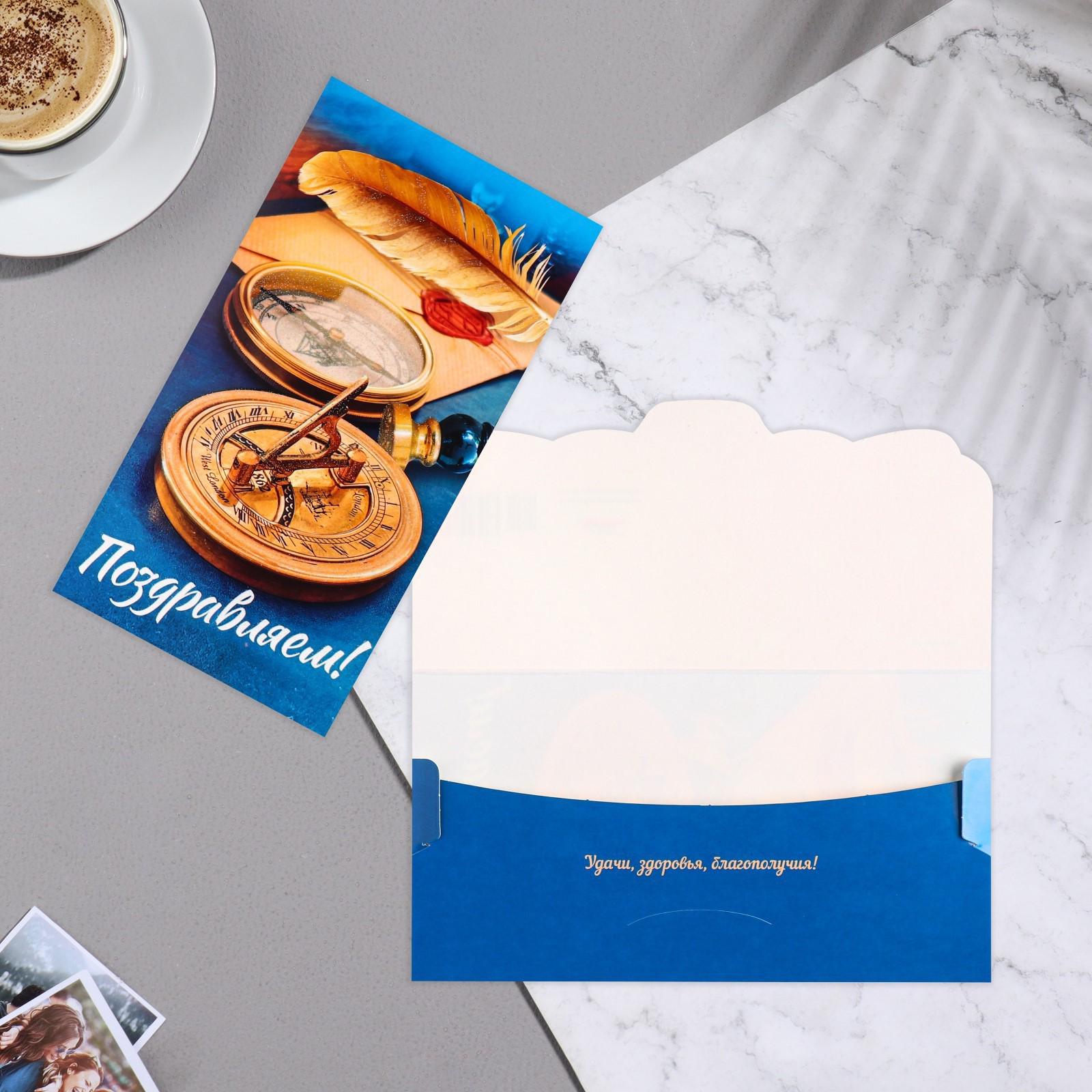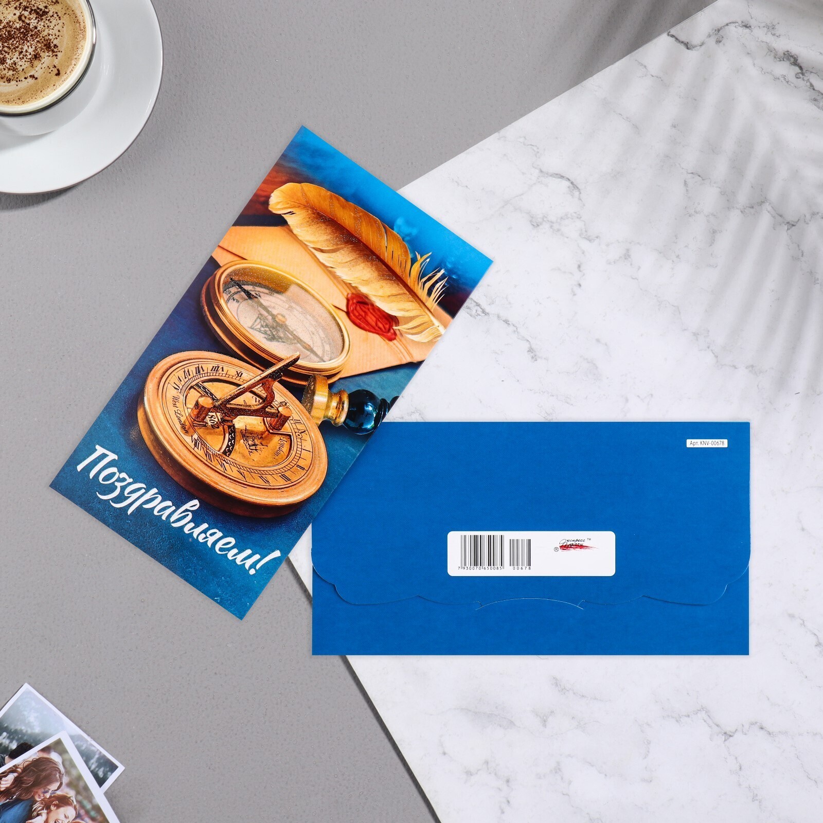 Конверт для денег "Поздравляем!" компас, перо, 18,5х8,5 см