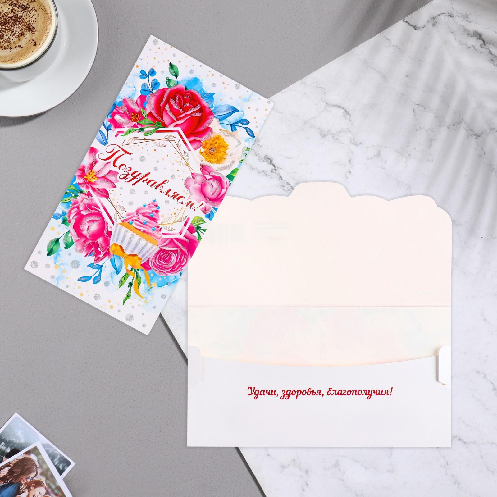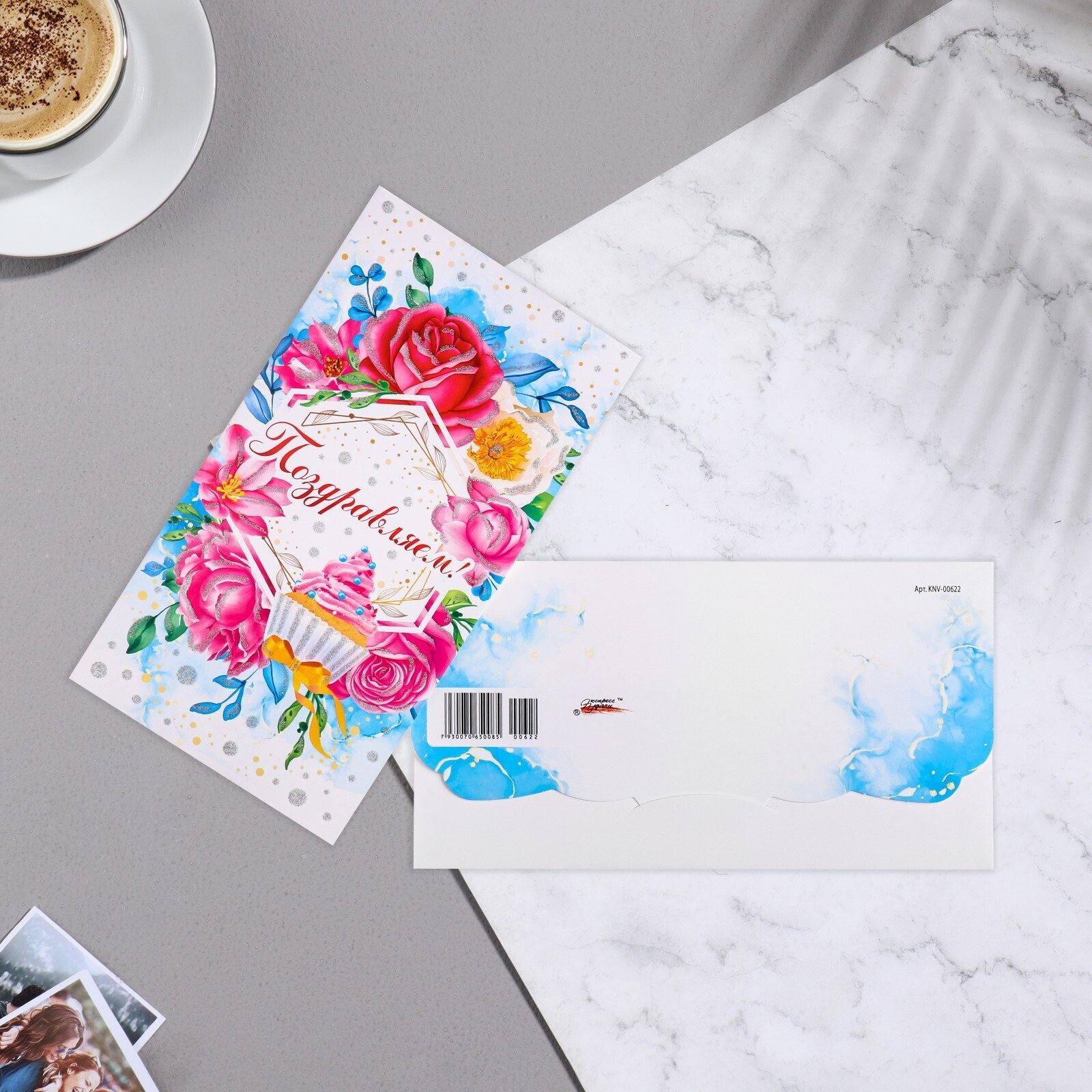 Конверт для денег "Поздравляем! - 5" цветы, 18,5х8,5 см