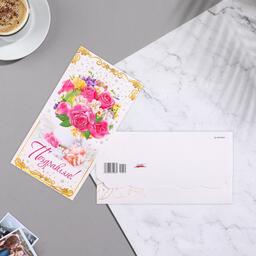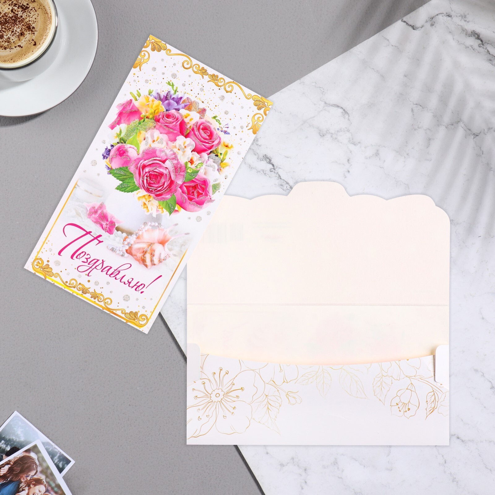 Конверт для денег "Поздравляем! - 2" цветы, 18,5х8,5 см