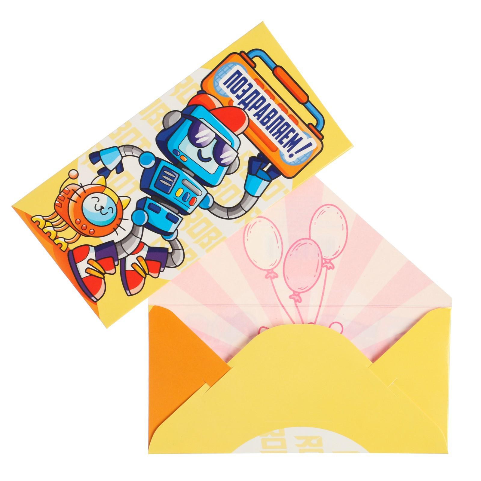 Конверт для денег "Поздравляем!" роботы, 16 х 8 см
