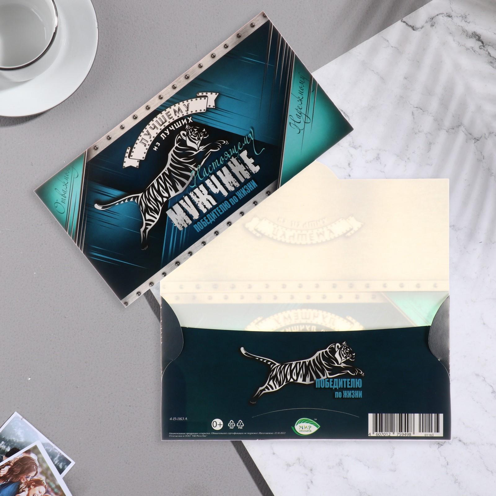 Конверт для денег "Настоящему мужчине!" тигр, 16,5х8,5 см