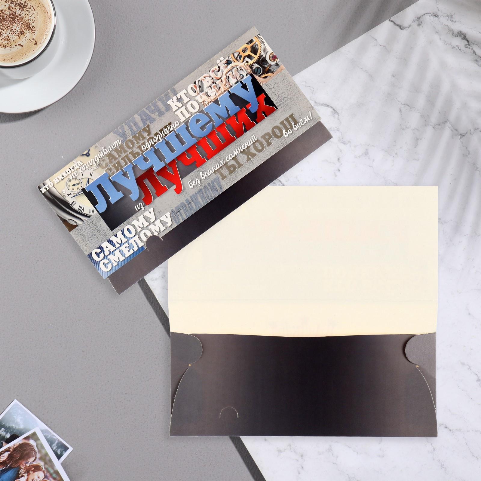 Конверт для денег "Лучшему из лучших!" механизм, серый фон, 8,3х16,3 см