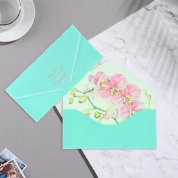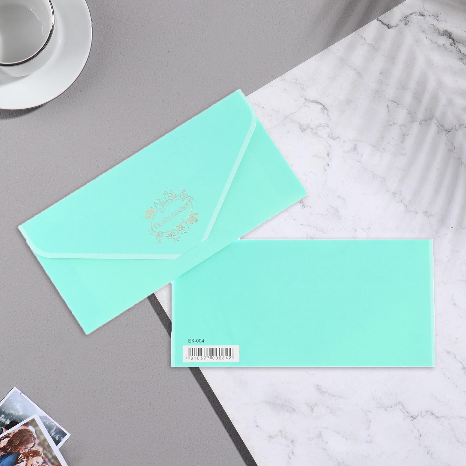 Конверт для денег "Поздравляю!" бирюзовый, бархат, 19,5х9см