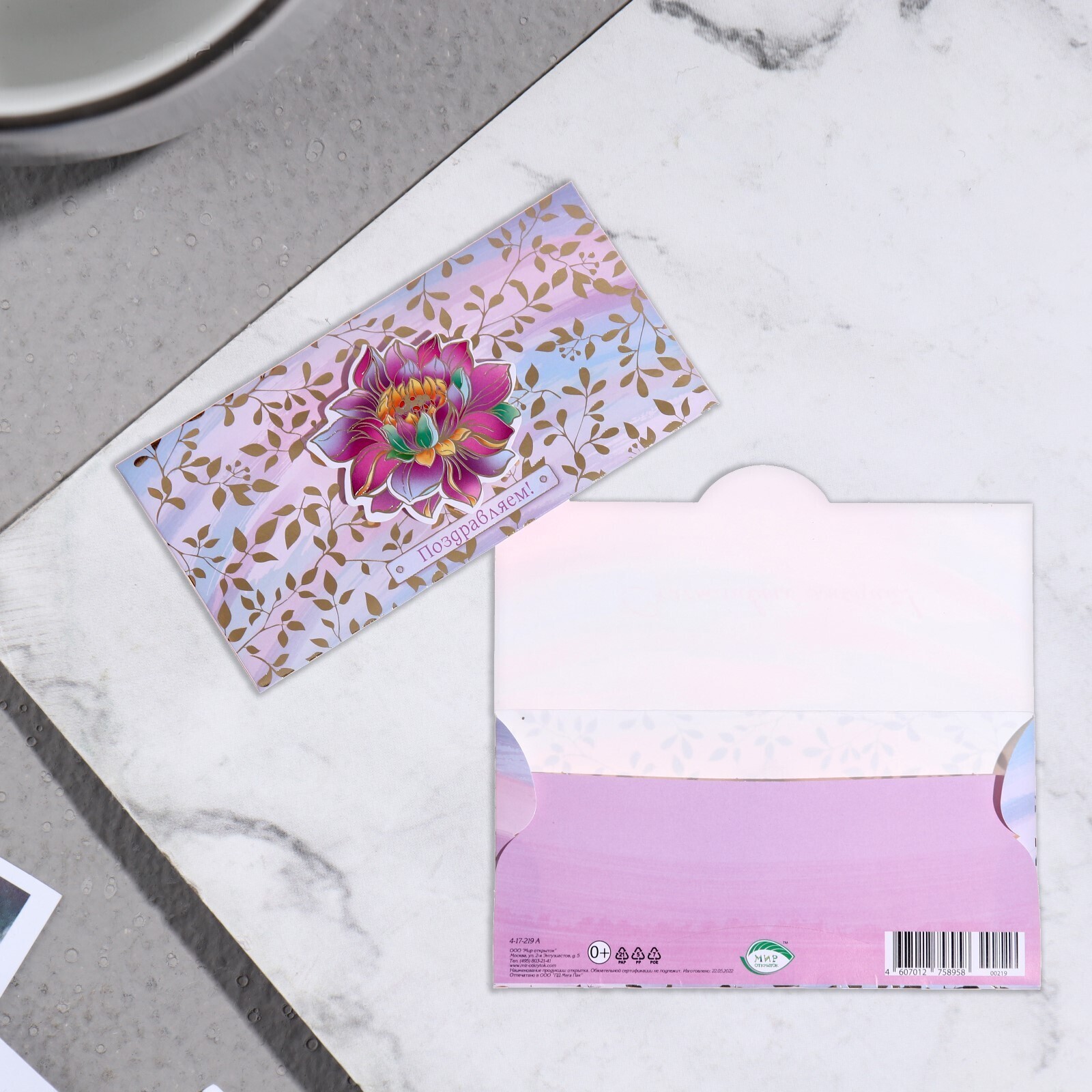 Конверт для денег "Поздравляем!" цветок, 16х8см