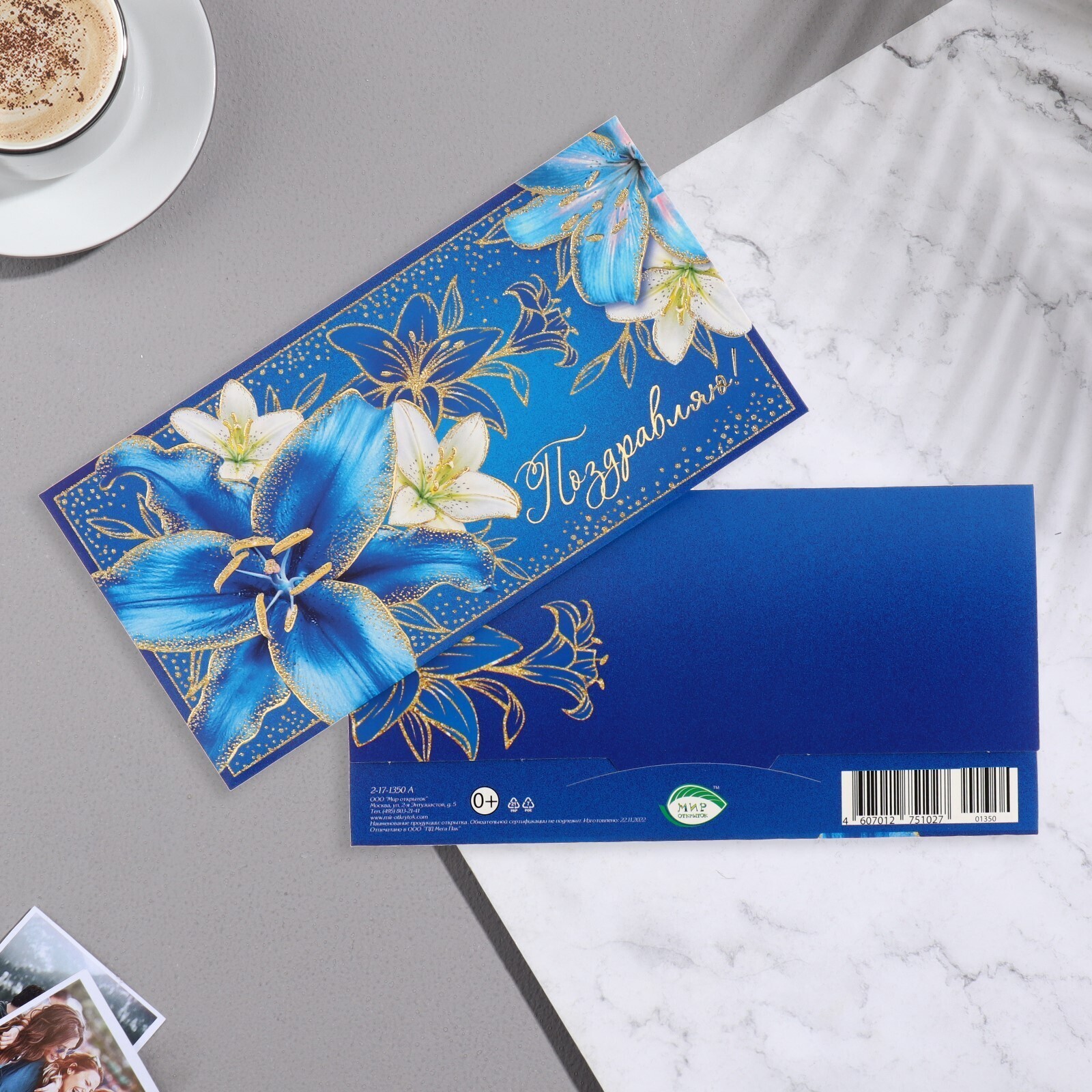 Конвер для денег "Поздравляю!" тиснение, лилии, 16,5х8,5 см