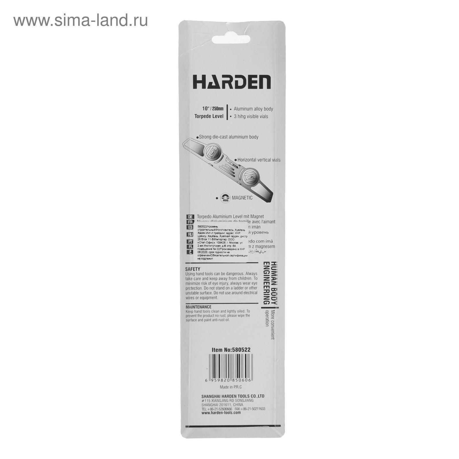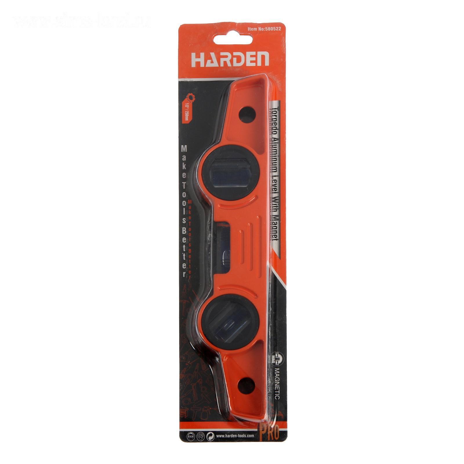 Уровень "Торпедо" HARDEN 580522, алюминиевый, магнитный, 3 глазка, 254 мм