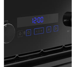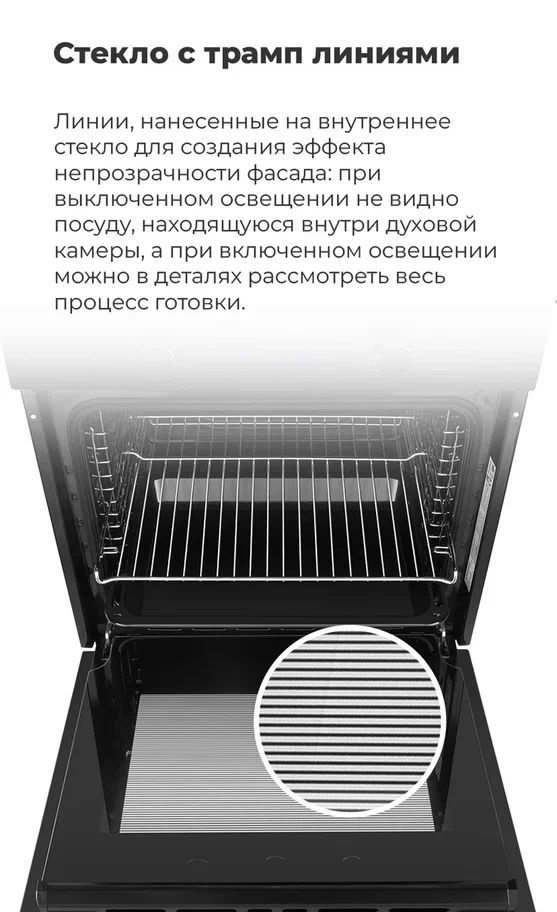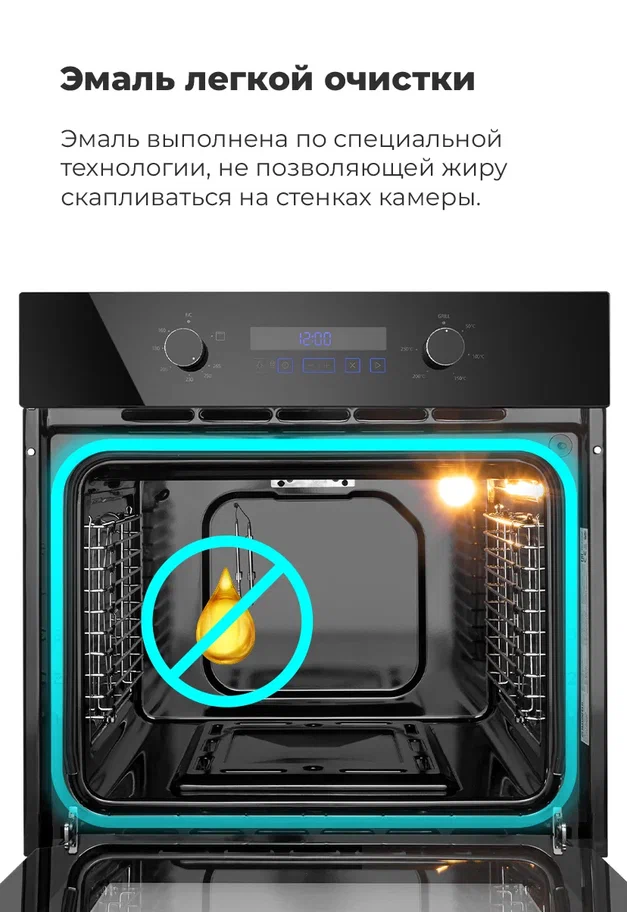 Стильный газовый встраиваемый духовой шкаф высокого качества сборки, актуального дизайна. Объем 70 л при стандартной ширине духового шкафа 60 см позволяет готовить одновременно несколько блюд, разместив решетку или противень на одном из 5-ти уровней боковых направляющих. Внутреннее покрытие камеры выполнено из специальной легкоочищающейся эмали черного цвета. Фронтальная панель дверцы, лицевая часть блока управления и фасад ручки дверцы сделаны из высококачественного жаропрочного стекла черного цвета, окрашенного по всему объему, что является отличительной чертой бытового прибора премиум-класса. Комбинированное управление реализовано в виде сенсорного управления с подсветкой и поворотных ручек. Можно выбрать режим работы, температуру (160-265℃), установить таймер. В данной модели есть 3 режима работы: нижний нагрев с вентилятором, электрический гриль, освещение. Данная модель работает как при открытом, так и при закрытом гриле. Дверца состоит из 2-х жаростойких стекол. Благодаря подобной конструкции образовывается холодный фронт, что делает процесс приготовления безопасным, исключая возможность ожога при касании. Надежность духового шкафа обеспечивается полным газ-контролем – система, которая перекрывает подачу газа, если потух огонь. Автоматический электроподжиг является дополнительным преимуществом этой модели. Трамп-линии нанесены на внутреннем стекле для создания визуального эффекта непрозрачности фасада: при выключенном освещении не видно посуду, находящуюся внутри духовой камеры, а при включенном освещении можно в деталях рассмотреть весь процесс готовки. В комплекте: стандартный противень - 1 шт., универсальная решётка - 1 шт.; дополнительный жиклёр для природного газа - 1 шт.; 5-ти уровневые направляющие.