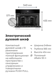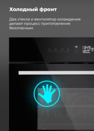 Объем 45 литров дает уверенность в том, что несмотря на компактные размеры этого духового шкафа, вы сможете приготовить в нем сразу необходимый объем пищи, порадовав себя и своих близких изысканными блюдами. Внутренняя камера покрыта эмалью легкой очистки. Технология "Холодный фронт" представляет собой верх безопасности и защиты. Специальное энергосберегающее остекление дверцы, состоящее сразу из трёх стекол с воздушной прослойкой между ними, и наличие встроенного вентилятора для охлаждения воздуха предотвращают нагревание наружной поверхности. Такая технология обезопасит вас от ожогов или неприятных ощущений при случайном касании, а мебель от повреждения. Даже при высоких температурах внутри духового шкафа его дверцы будут едва тёплыми. Это также очень актуально, когда в доме есть дети, животные. Сенсорное управление - панель управления FULL TOUCH и отображение показателей датчиков на дисплее с премиальной подсветкой имеет современный интуитивно понятный интерфейс. Это делает использование духового шкафа Maunfeld ещё приятнее. Встроенный электронный модуль позволит гибко настраивать и менять режим готовки, помогая вам проводить свои кулинарные эксперименты. Высокоточные датчики панели управления, которые отвечают за настройку работы духового шкафа, прекрасно реагируют на прикосновение пальца, почти не пачкаются и легко чистятся. Для безопасности на панели управления есть блокировка.Яркое внутреннее освещение делает процесс приготовления блюд ещё приятнее. Вы всегда сможете видеть состояние готовящихся блюд , контролировать их готовность, даже не открывая шкафа. Фронтальная панель сделана из высококачественного жаропрочного стекла черного цвета. Цельнометаллическая ручка дверцы из матированной нержавеющей стали лаконично поддерживает общий стиль и не нагревается во время готовки. Каталитическая самоочистка - благодаря стенкам, покрытые специальным каталитическим веществом, самостоятельно расщепляющим загрязнения,которые оседают на поверхности в процессе приготовления, время на очистку шкафа значительно сократиться. Это позволит наслаждаться частным приготовлением вкуснейших блюд. Замок от детей - эффективная защита от незапланированной активации устройства, в результате случайного нажатия во время уборки или попытки включения прибора детьми. Таймер приготовления - по истечении установленного времени, духовка автоматически отключится. Объем 45 литров дает уверенность в том, что несмотря на компактные размеры (60 см) этого электрического духового шкафа, вы сможете приготовить в нем сразу необходимый объем пищи, порадовав себя и своих близких изысканными блюдами. Духовые шкафы Maunfeld отличаются низким энергопотреблением при высокой эффективности. Это значит, что они при небольшом расходе электричества и режиме ускоренного приготовление способные создавать любимые вами кулинарные шедевры.