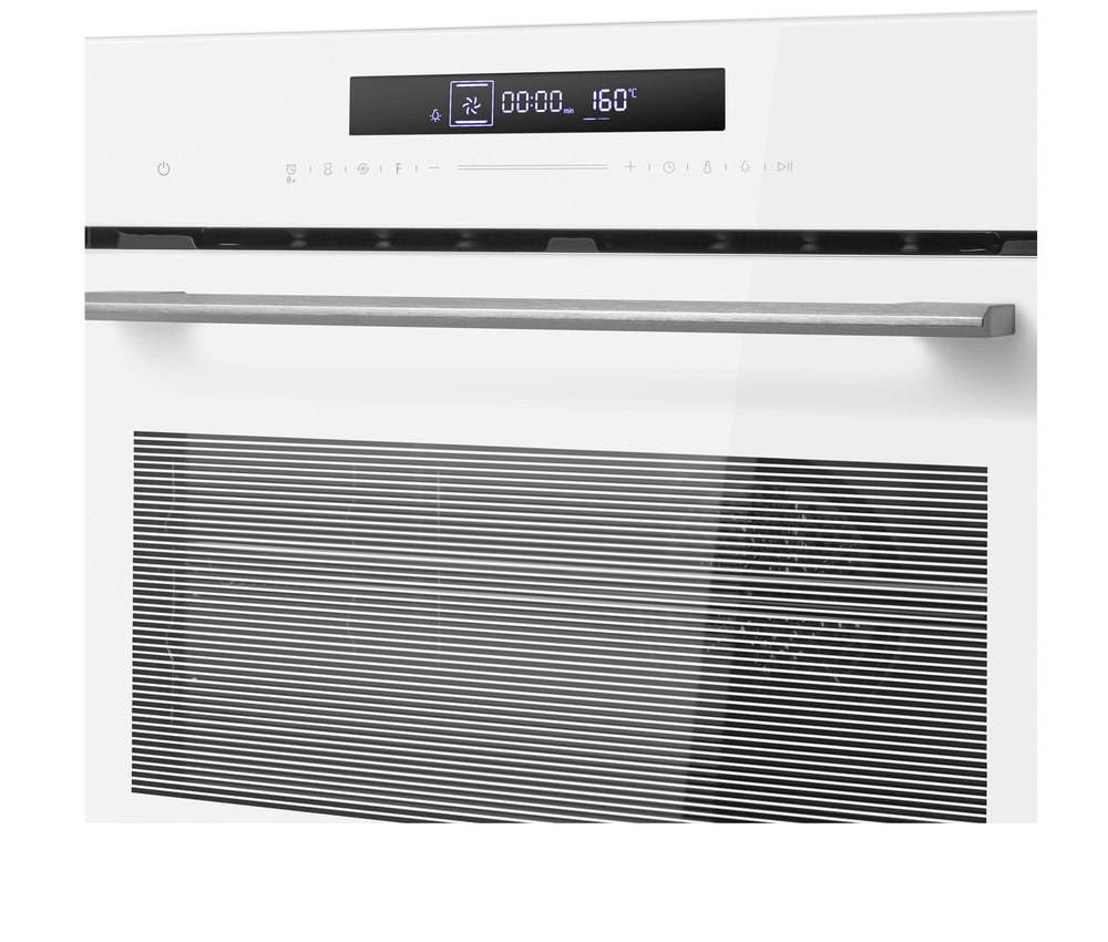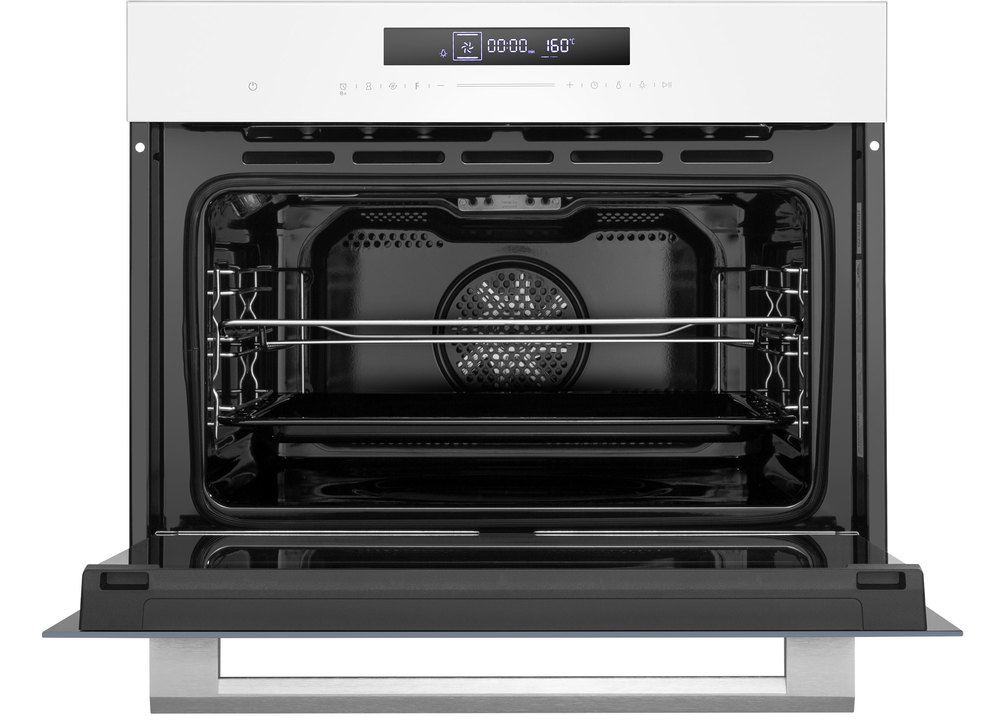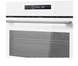 Объем камеры составляет 50 литров, ширина духового шкафа 60 см. Внутренняя камера покрыта эмалью легкой очистки. Дверца компактного духового шкафа изготовлена по технологии "Холодный фронт". Пользователь может активировать 13 режимов приготовления среди которых: конвекция; обычный + вентилятор; гриль; двойной гриль; размораживание; приготовление теста; пицца. Защита от детей - эффективная защита от незапланированной активации устройства, в результате случайного нажатия во время уборки или попытки включения прибора детьми. Управление LCD дисплеем: простота в использовании благодаря прямому доступу к дополнительным функциям и рекомендации по температуре позволит выбрать режим работы. Панорамное стекло и мощное внутреннее освещение позволяет контролировать весь процесс приготовления не открывая дверцу. Фронтальная панель сделана из высококачественного жаропрочного стекла белого цвета. Цельнометаллическая ручка дверцы из матированной нержавеющей стали лаконично поддерживает общий стиль и не нагревается во время готовки. В комплекте поддон для выпечки и решетка-гриль.